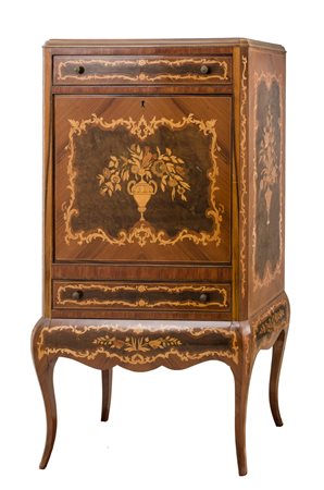 MOBILE stile Maggiolini in noce con tarsie in bosso con un'anta a ribalta e due cassetti. Lombardia XX secolo Misure: cm 80 x 46 x h 140