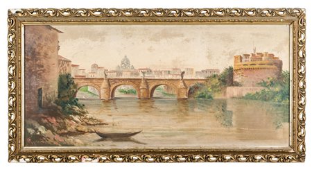 G. GUARNERI OLIO su tela "Ponte Sant'Angelo a Roma". Primi '900 Misure: cm 30 x 65