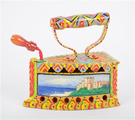 SALVATORE CALO' (Palermo 1950) FERRO da stiro dipinto a motivo dicarretto...
