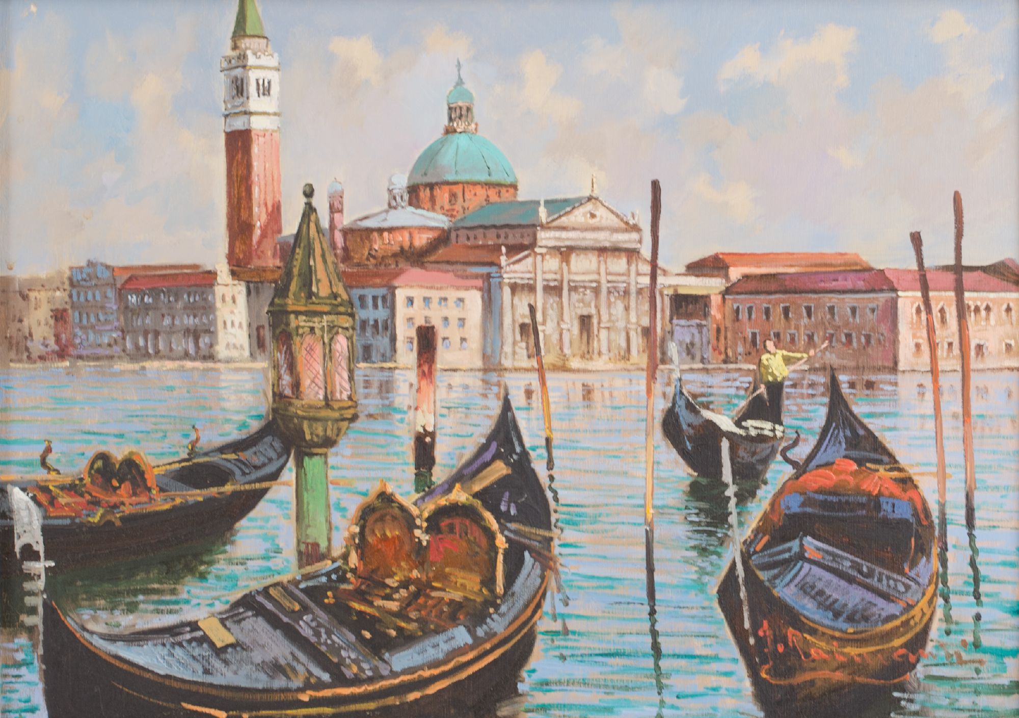 OLIO su tela "veduta di San Marco a Venezia con gondole". XX secolo Misure:...