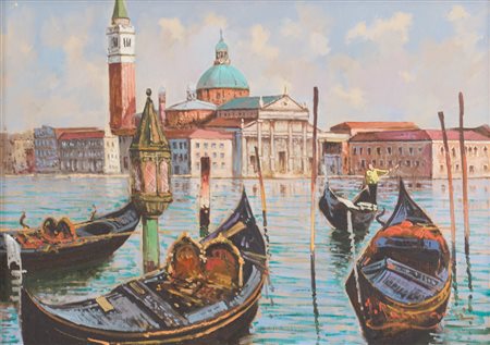 OLIO su tela "veduta di San Marco a Venezia con gondole". XX secolo Misure: cm 50 x 70