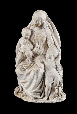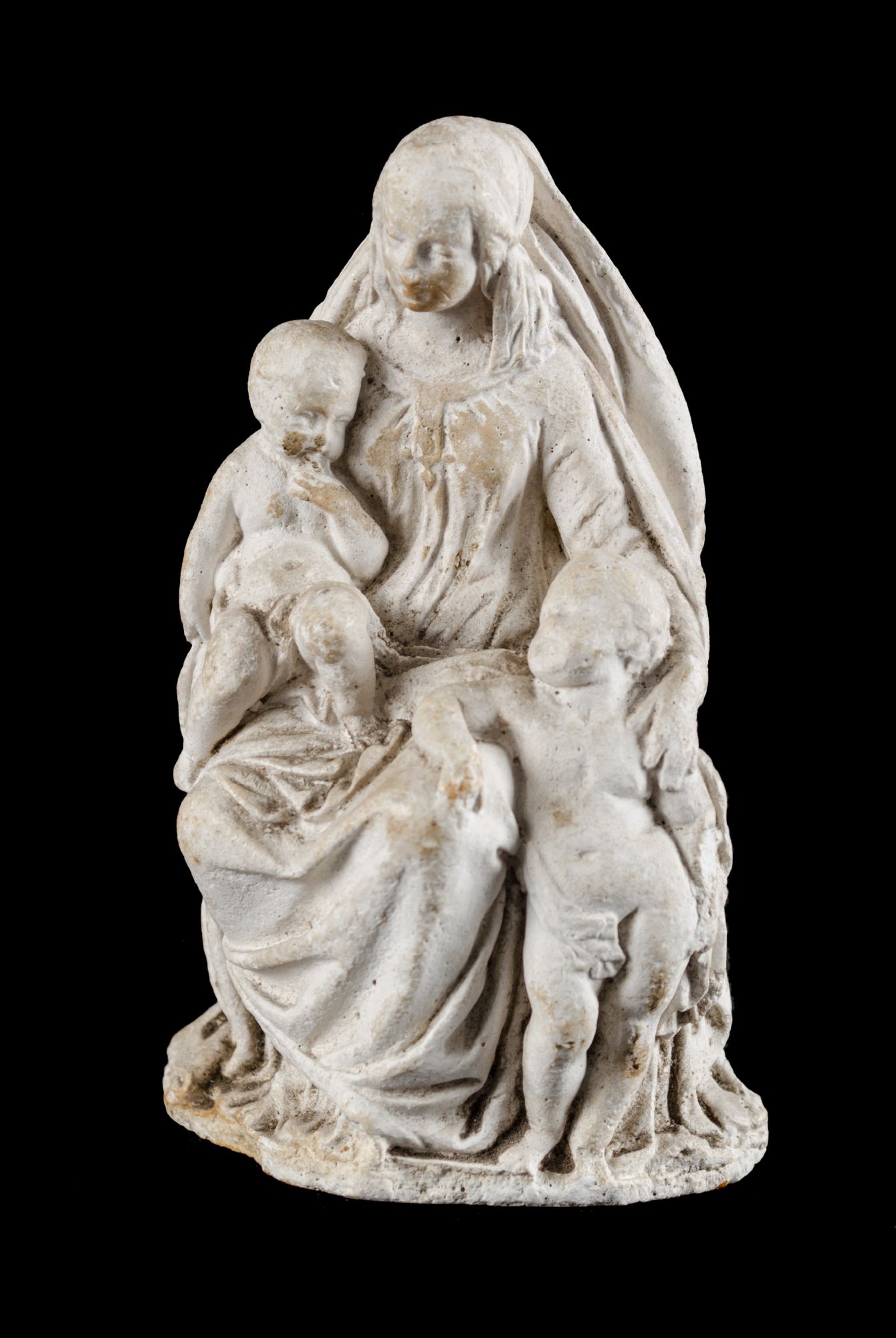 GRUPPO in schiuma di gesso raffigurante "Madonna con Bambino e San Giovannino". Sicilia primi '900 Misure: h cm 12