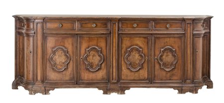 CREDENZA a sei ante in noce e radica di noce. Italia XX secolo Misure: cm 253...
