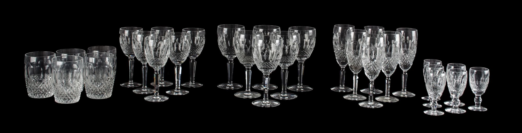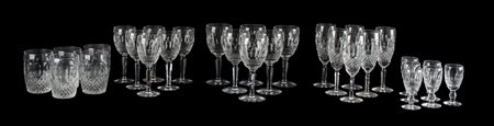 SERVIZIO BICCHIERI Waterford in cristallo riccamente lavorato composto da 12 BICCHIERI per acqua, 12 BICCHIERI per vino, 12 FLUTES, 6 BICCHIERI per bibite e 6 BICCHIERI da liquore. XX secolo Misure: varie