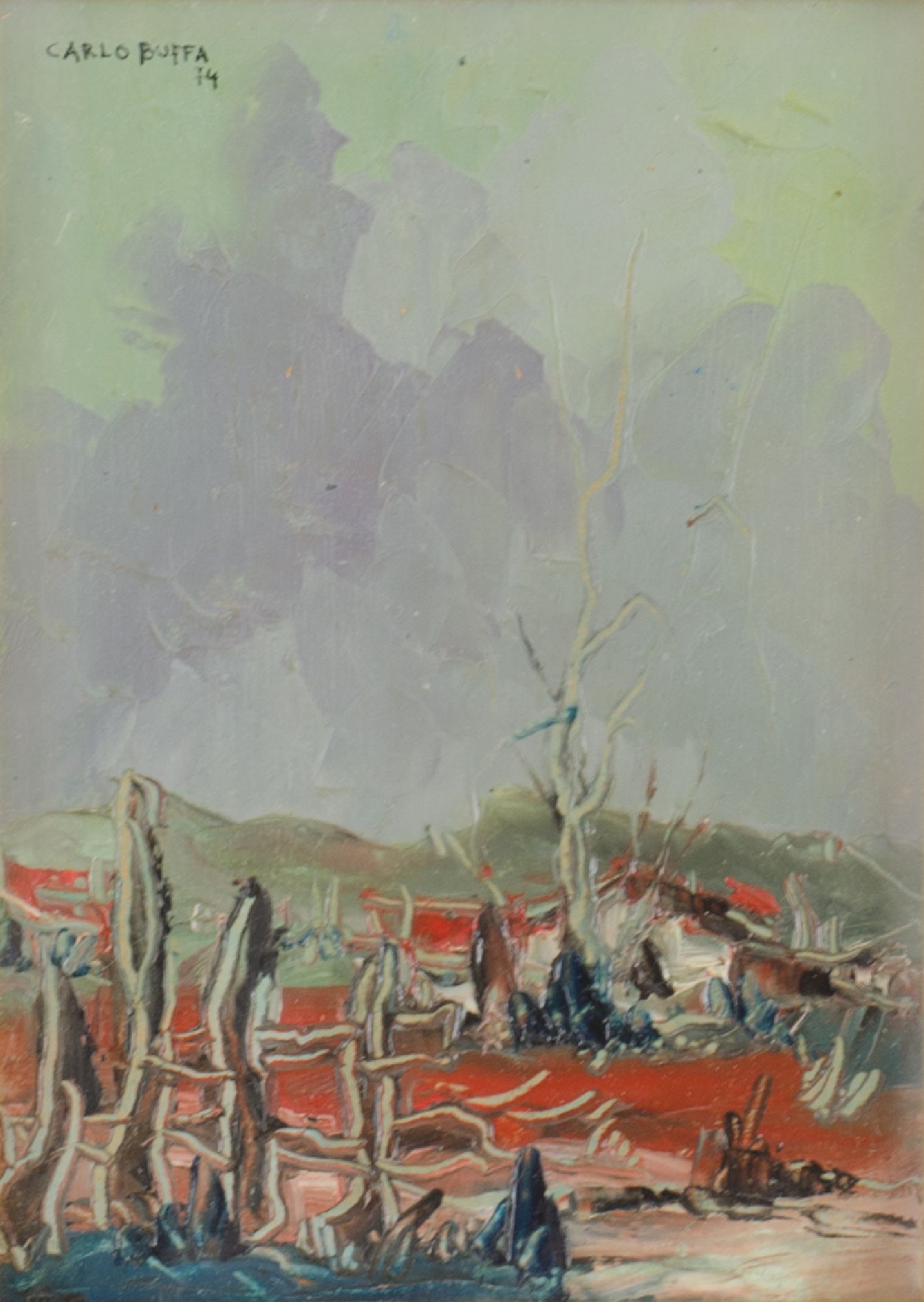 CARLO BUFFA OLIO su tavoletta "paesaggio". XX secolo Misure: cm 18 x 13