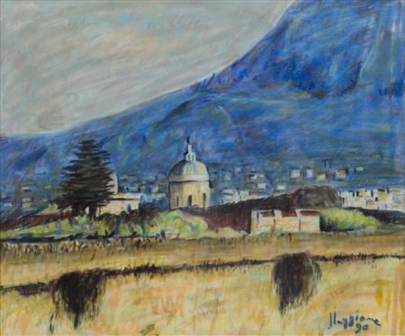 MAGGIORE OLIO su cartoncino "paesaggio", firmato in basso a destra. Datato 1990 Misure: cm 46 x 55