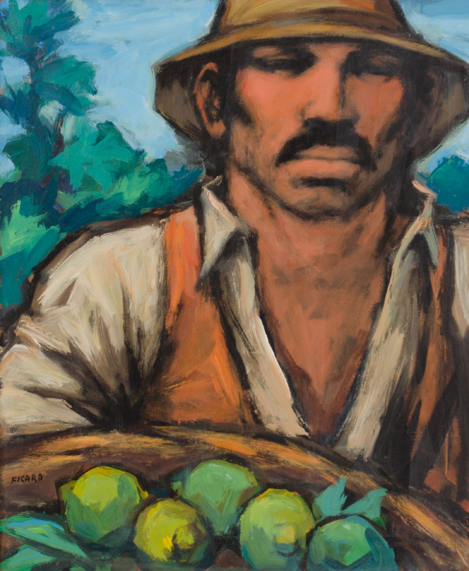 FRANZ FICARA (Reggio Calabria 1926 - Milano 1994) OLIO su tela "contadino", firmato in basso a sinistra. Datato 1979 Misure: cm 60 x 50