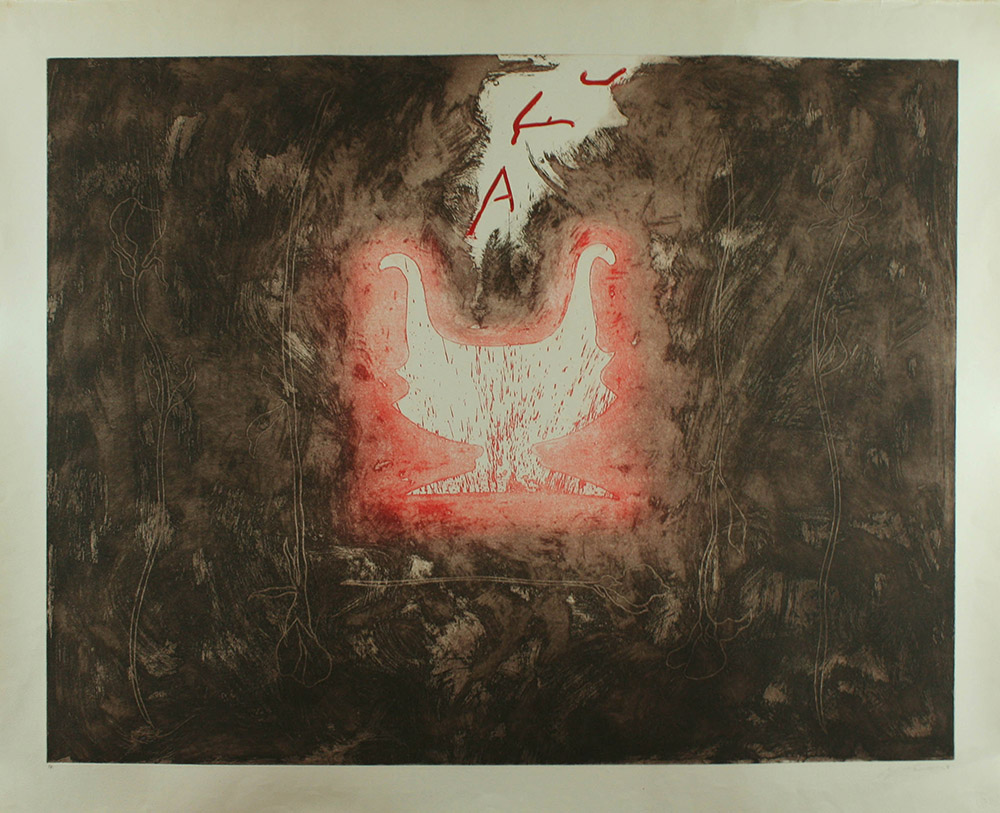 Omar Galliani acquatinta acquaforte senza titolo, cm 106,5x127,5 F.to e datato in b a dx Esemplare P.A. Timbro a secco Stamperia Santa Chiara di Urbino