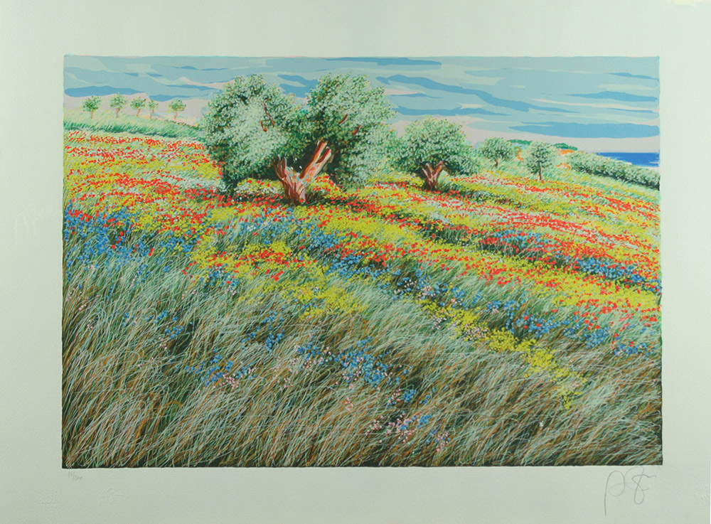 Franco Azzinari serigrafia "Arcobaleno nel prato", cm 60x80 F.to in b a dx Eemplare n° 86/200