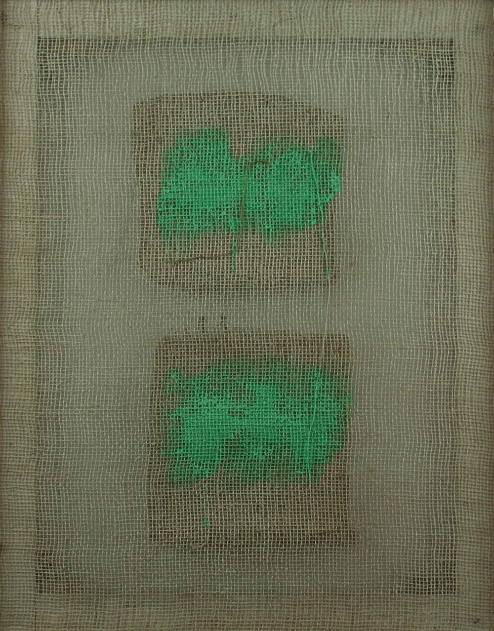 Salvatore Emblema terra colorata su tela di juta, 2005 senza titolo, cm 70x90...