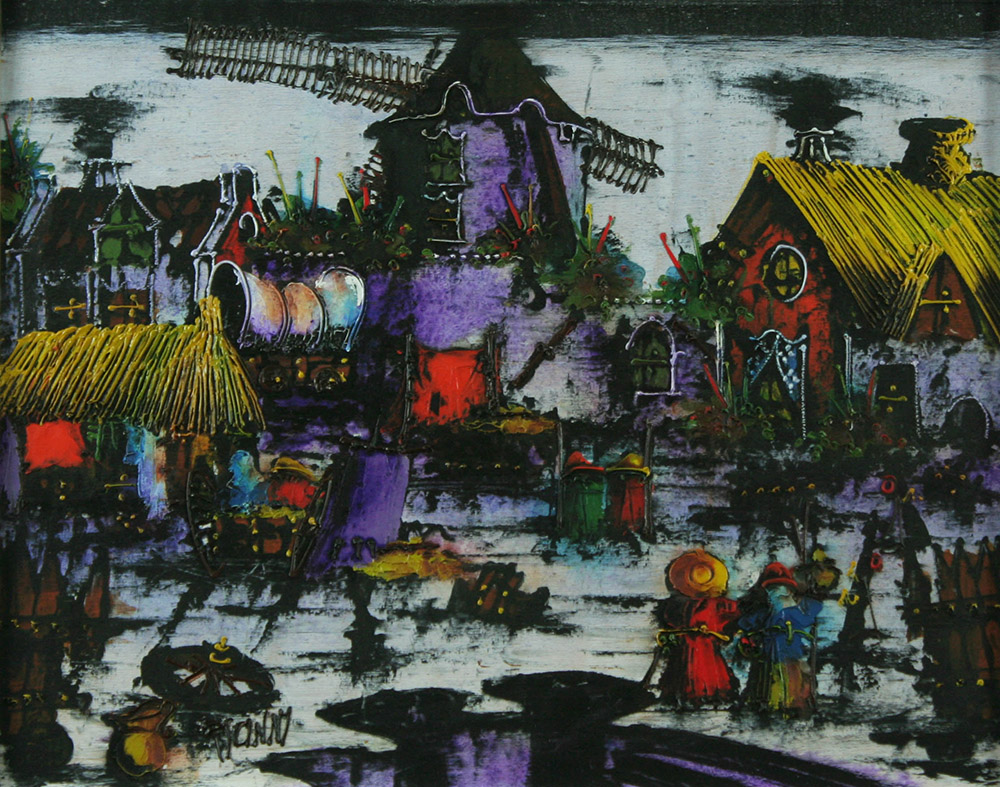Gennaro Picinni olio su tavola, 1981 "Paesaggio nordico", cm 40x50 Al retro timbro della Galleria Le Muse di Bari, data e dichiarazione di autenticità del maestro