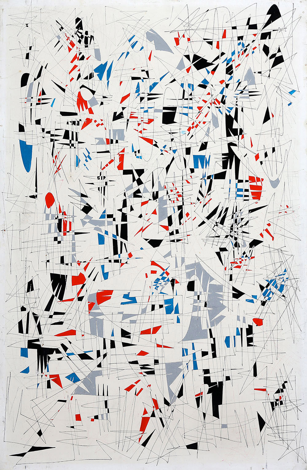 EDOARDO GIORDANO 1904 - 1974 Senza titolo, 1955 Tecnica mista su tela, cm....