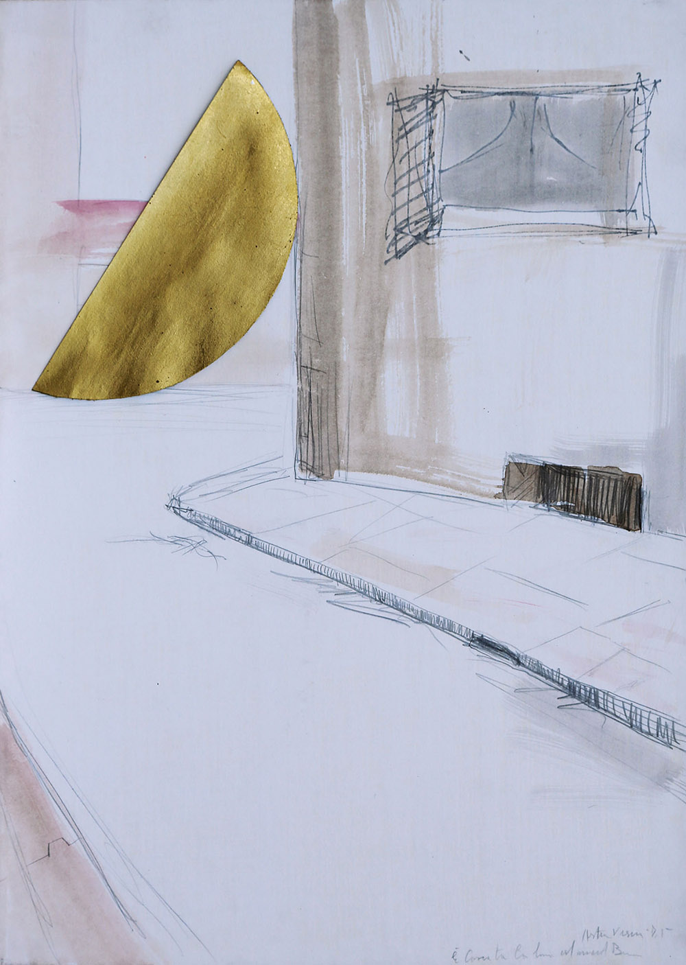 ARTURO VERMI 1928 - 1988 E' caduta la luna sul monte Bue, 1975 Tecnica mista e collage su carta su tela, cm. 70 x 50 Firmato e datato in basso a destra Autentica Anna Maria Rizzo su fotografia Timbro Archivio Arturo Vermi su fotografia Prov. Collezione Privata