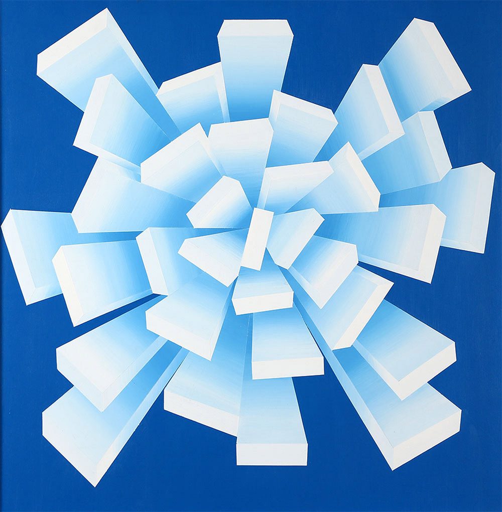 PAOLO MINOLI 1942 - 2004 Ricerca spazio prospettico, 1969 Olio su tela, cm. 100 x 100 Firmato e datato sul retro Etichetta Galleria Pianella Cantù sul retro Etichetta Premio Ottone Rosai sul retro Prov. Collezione Privata