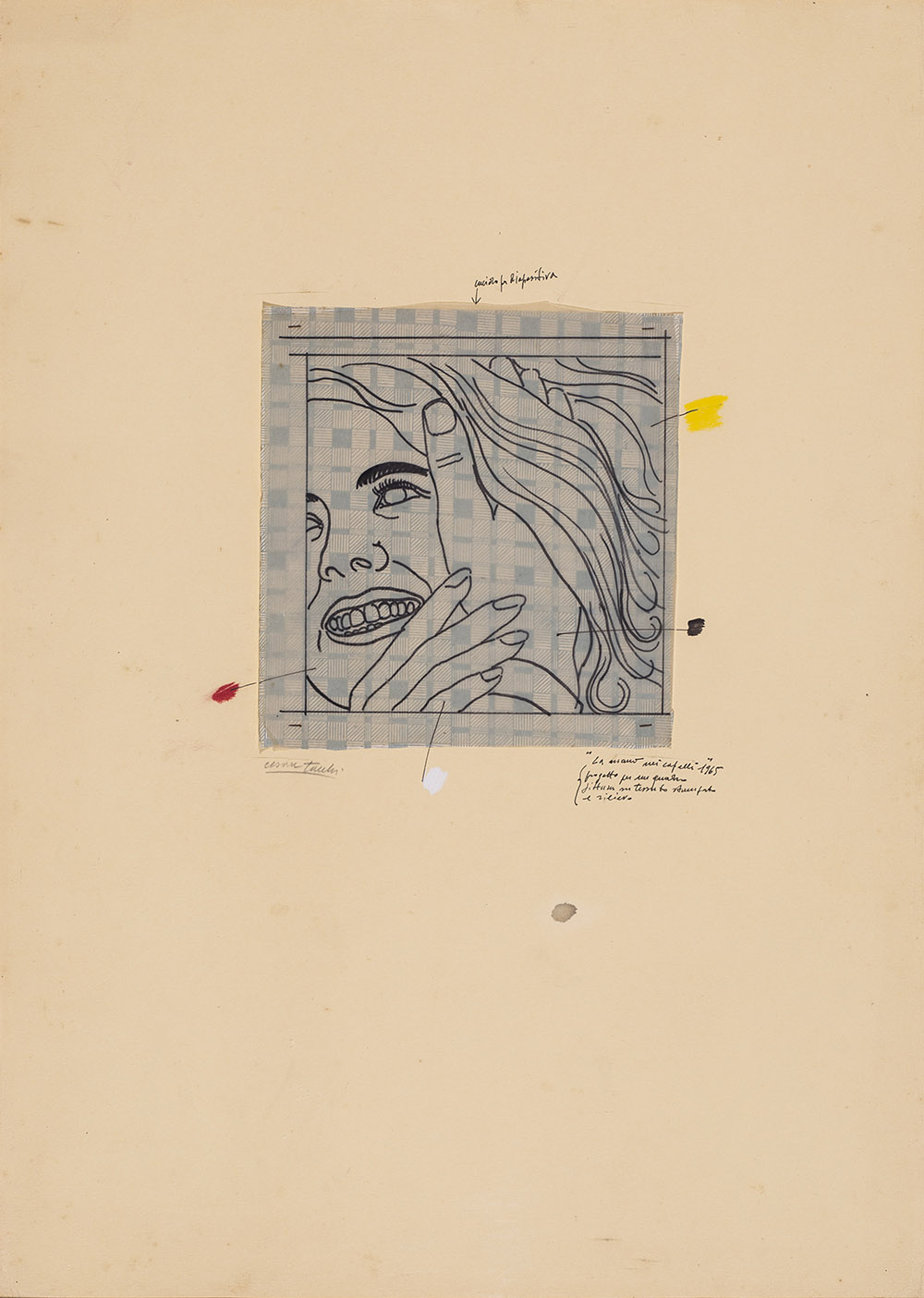 CESARE TACCHI (1940-2014)La mano nei capelli, 1965 Tecnica mista su carta da...