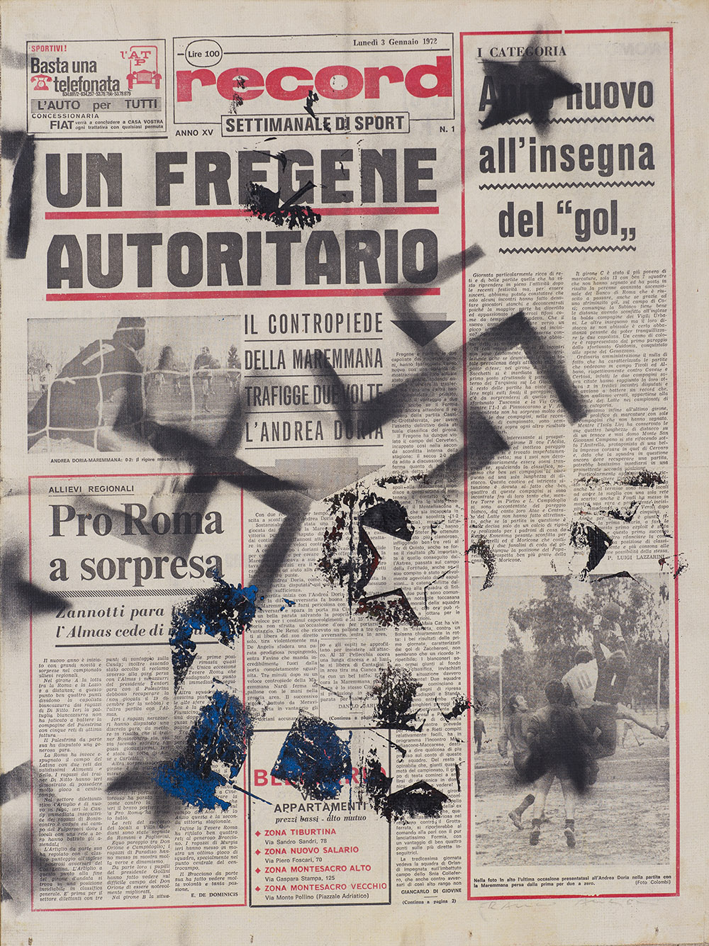 FRANCO ANGELI (1935-1988)Senza Titolo, 1972 Smalto su carta di giornale...