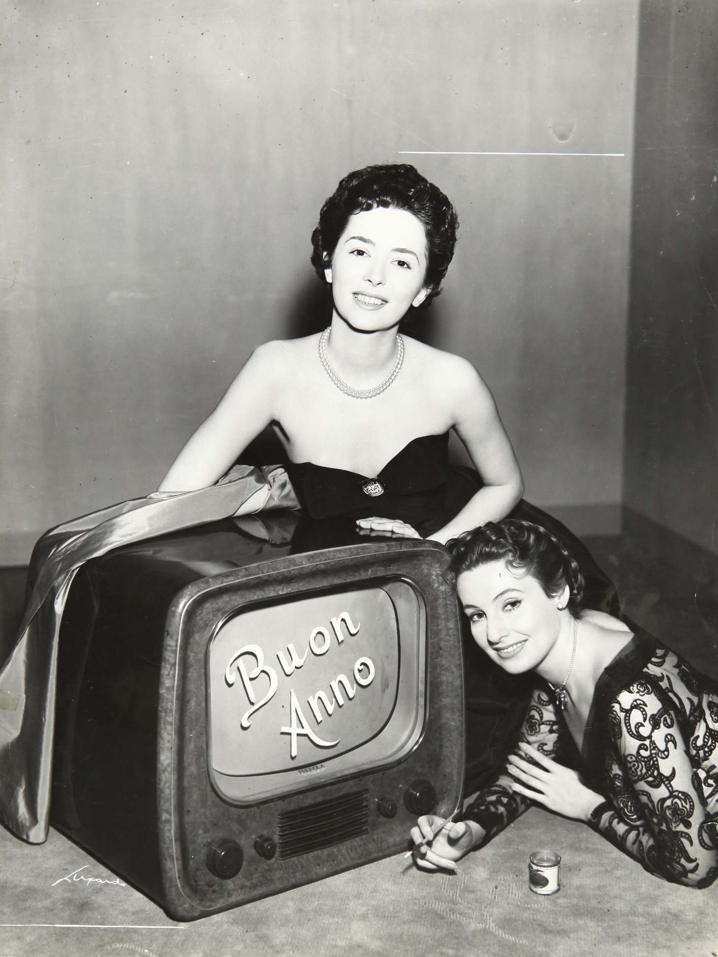 ELIO LUXARDO (1908-1969) Annunciatrici della tv augurano un buon anno 1954 stampa alla gelatina sali d'argento - vintage 40x30 cm sul retro timbro del fotografo didascalia dell'immagine