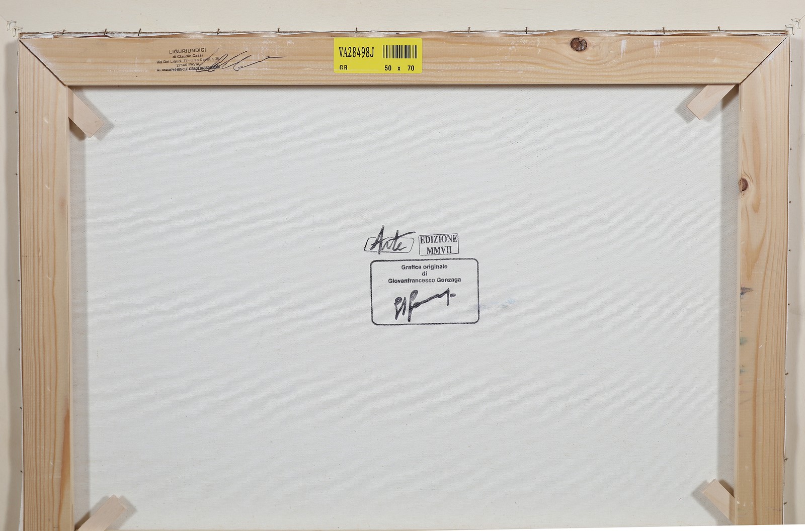 GONZAGA GIOVAN FRANCESCO (1921 - 2007) Senza titolo. . Serigrafia su tela. Cm 70,00 x 50,00. Firma in basso a sinistra, numero 60/250 in basso a destra. Al retro timbro Liguriundici Arte Pavia, autentica dell'artista. . Cornice presente
