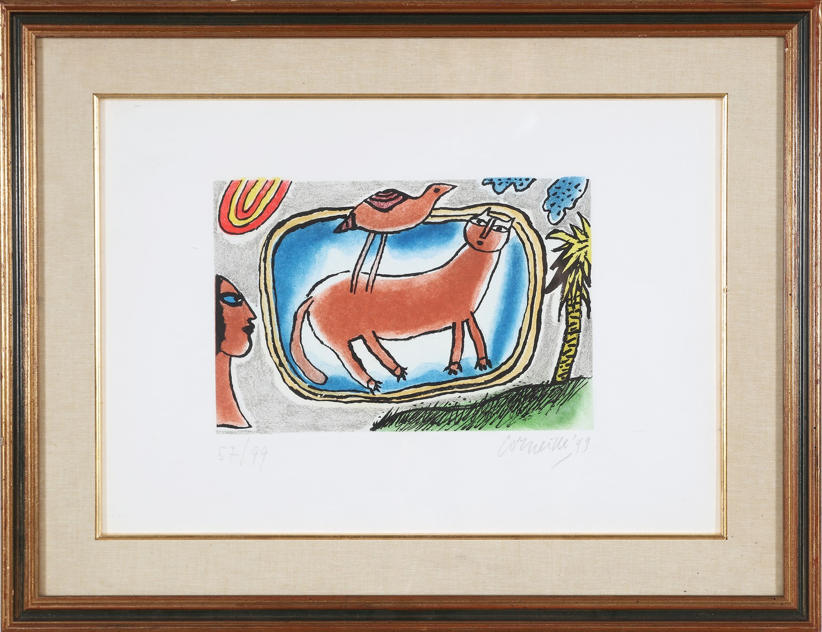 CORNEILLE (1922 - 2010) Senza titolo. 1999. Acquaforte. Cm 50,00 x 35,00. 57/99. Tiratura, firma e anno a matita in basso. Cornice presente
