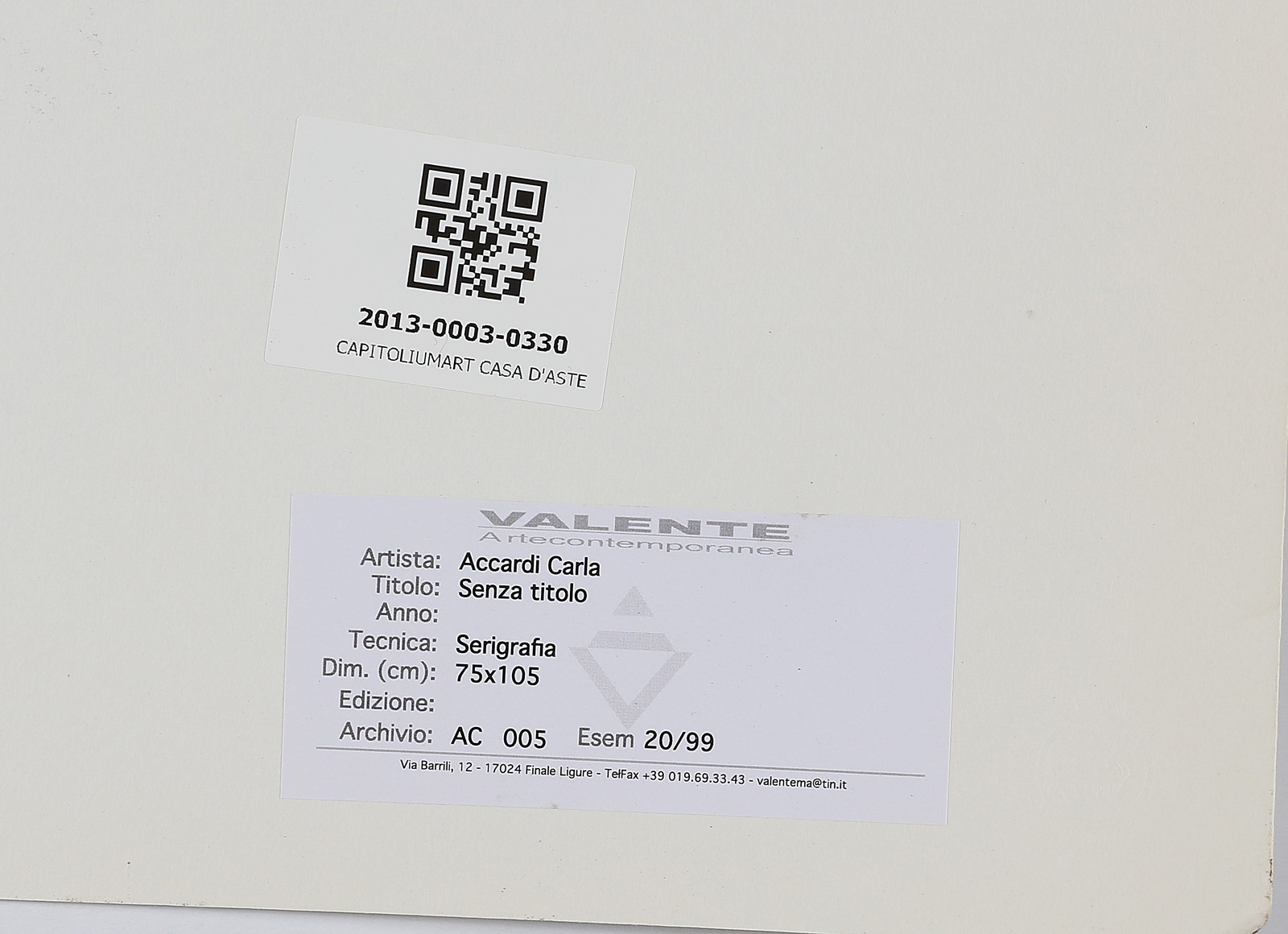 Lotto 246 | ACCARDI CARLA (n. 1924) Senza titolo. Serigrafia. Cm 105,00 x 75,00. 20/99....