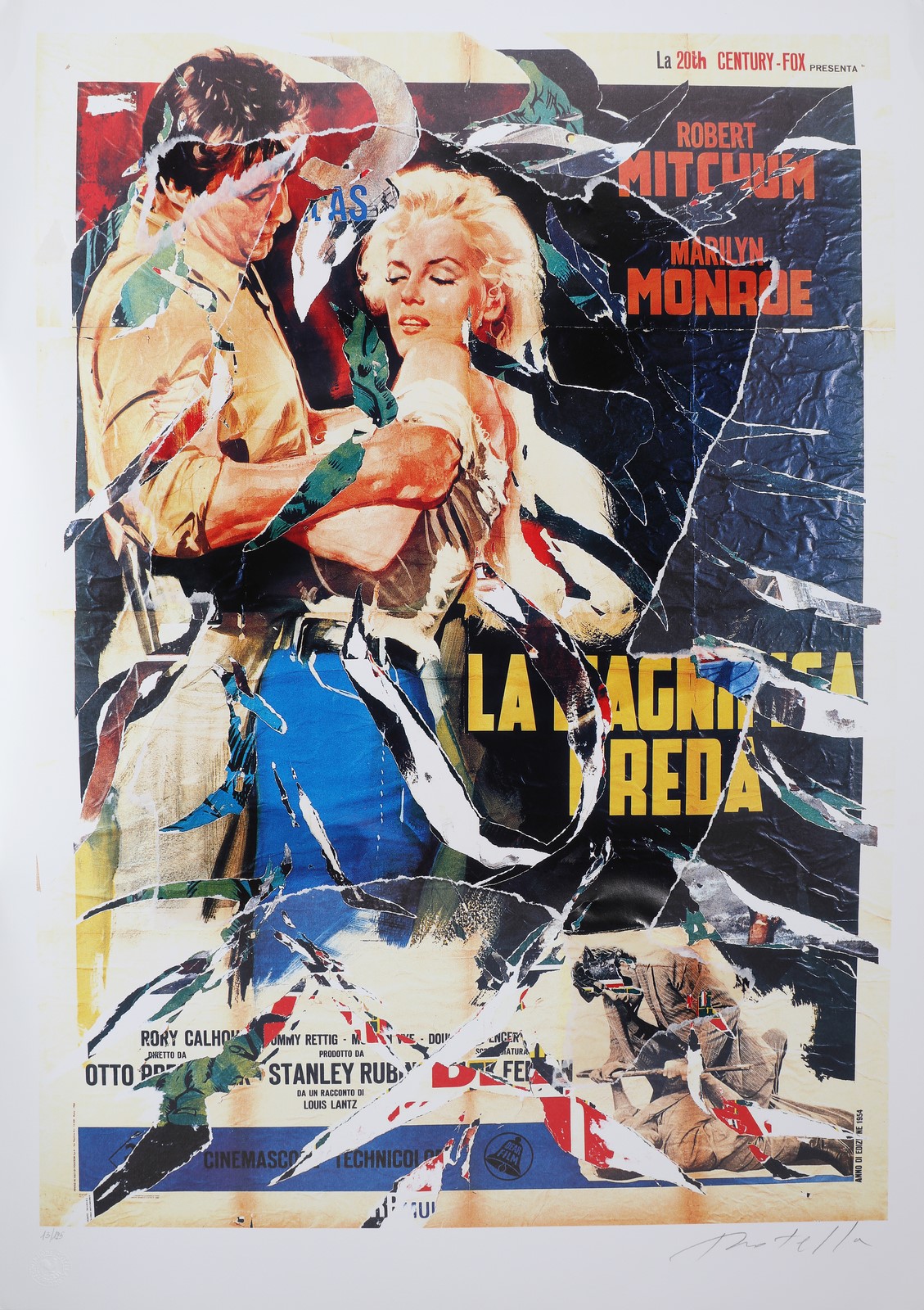 ROTELLA MIMMO (1918 - 2006) La magnifica preda. Litodecollage. Cm 70,00 x 100,00. 13/125. Tiratura e firma a matita in basso. Timbro a secco Fondazione Mimmo Rotella, Milano in basso a sinistra. Pubblicazione: Mimmo Rotella - Multiples décollages, Silvana Editoriale, 2005, pag. 85.