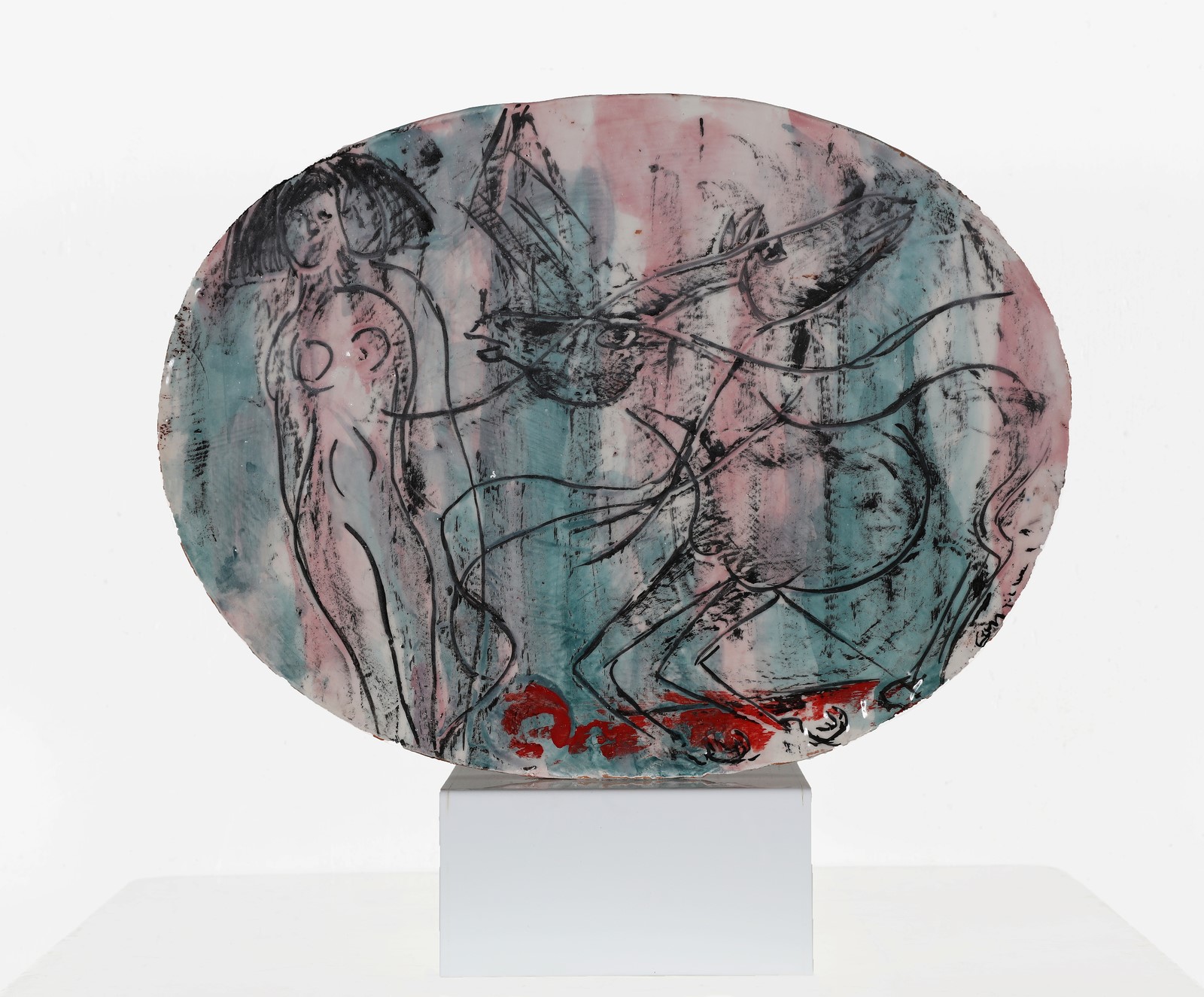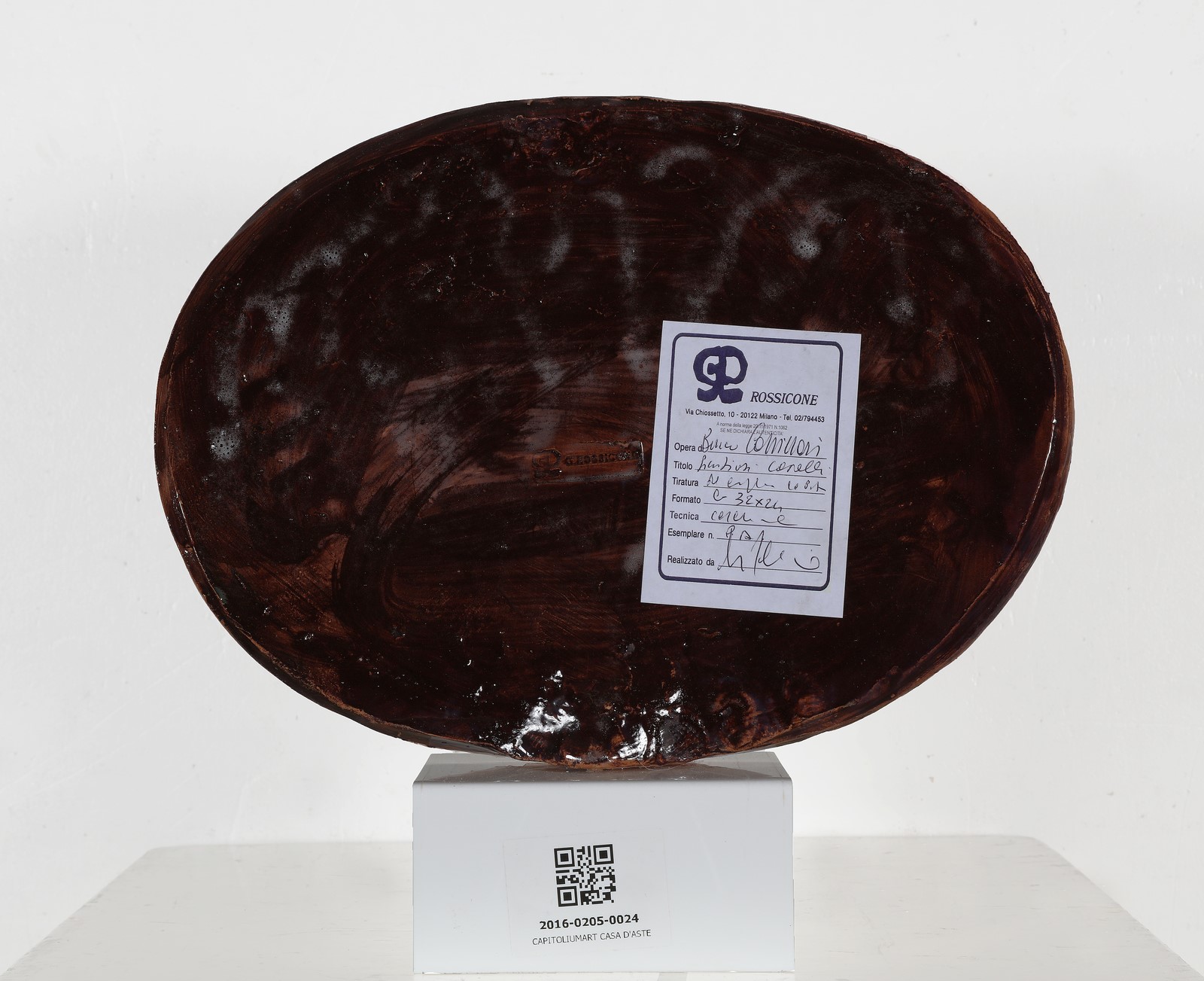 CASSINARI BRUNO (1912 - 1992) Senza titolo. Ceramica. Cm 32,00 x 24,00. P.d.a. Firma in basso. Al retro cartiglio descrittivo e timbro a cura di Rossicone, Milano.