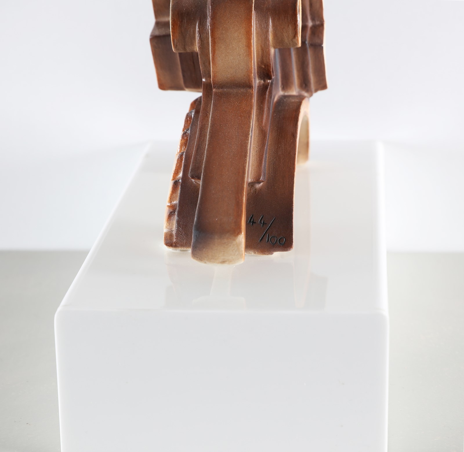 MASTROIANNI UMBERTO (1910 - 1998) Senza titolo. Scultura. Cm 15,00 x 18,00. 44/100. Firma e tiratura alla base. Dimensioni con la base: 26x24.5x13 cm. Autentica dell'artista su fotografia a cura della Galleria d'Arte Lo Spazio, Brescia