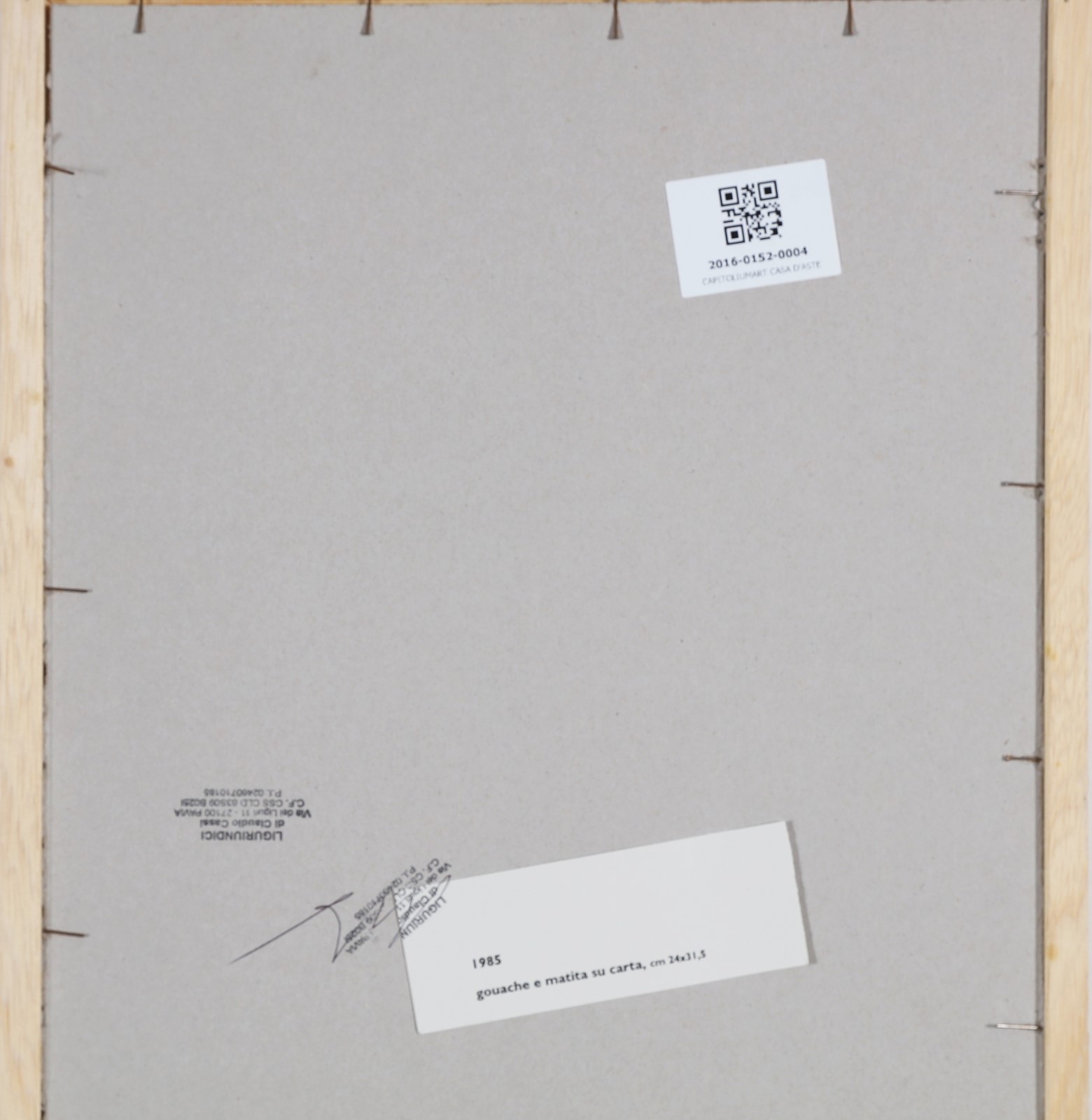 TORNQUIST JORRIT (n. 1938) Senza titolo. . 1985. gouache e matita su carta. Cm 31,50 x 24,00. Firma e anno in basso al centro. Al retro archivio e timbro Liguriundici Arte Pavia.