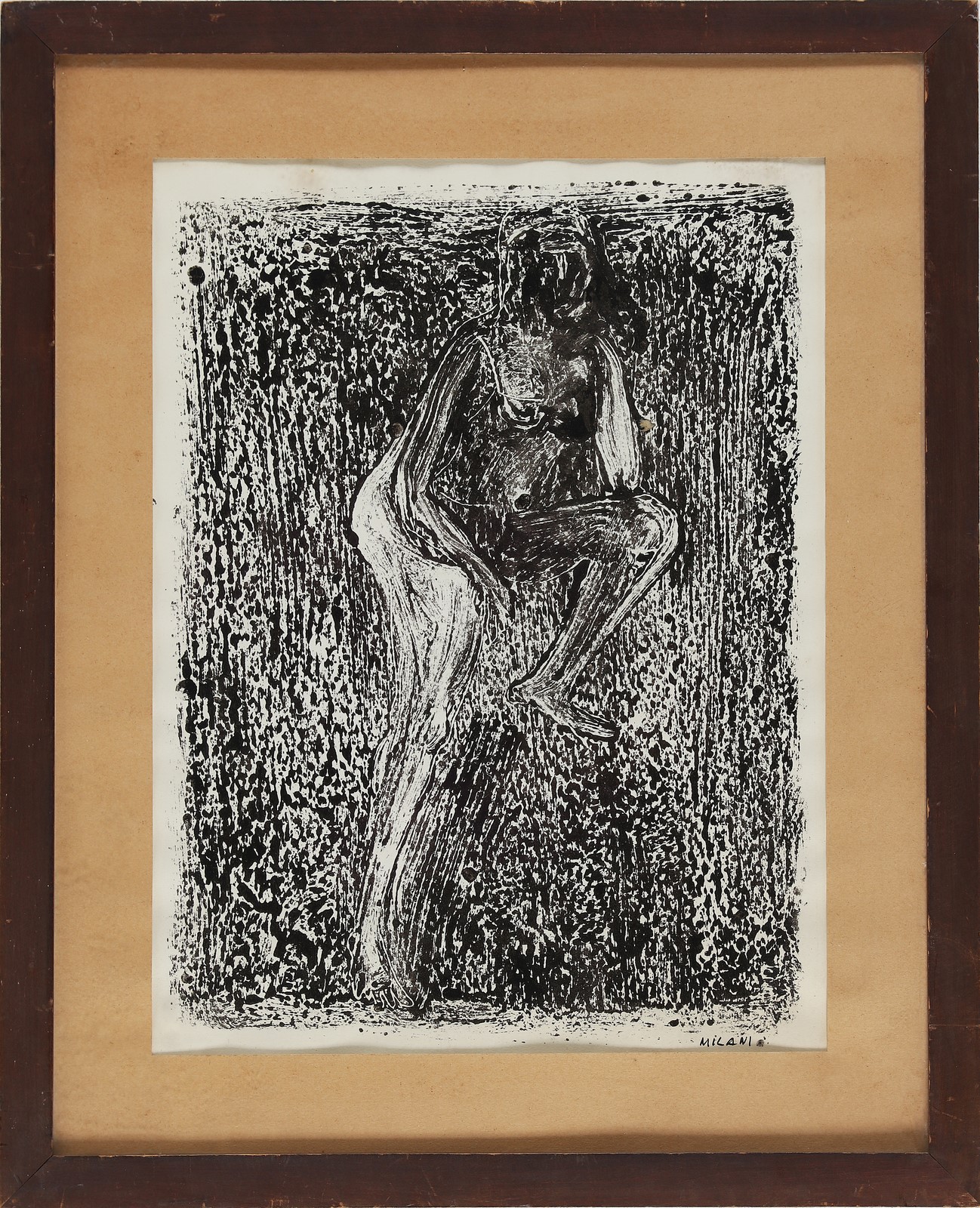MILANI UMBERTO (1912 - 1969) Senza titolo. Inchiostri su carta. Cm 38,00 x 50,00. Firma in basso a destra.Anni '50. Cornice presente