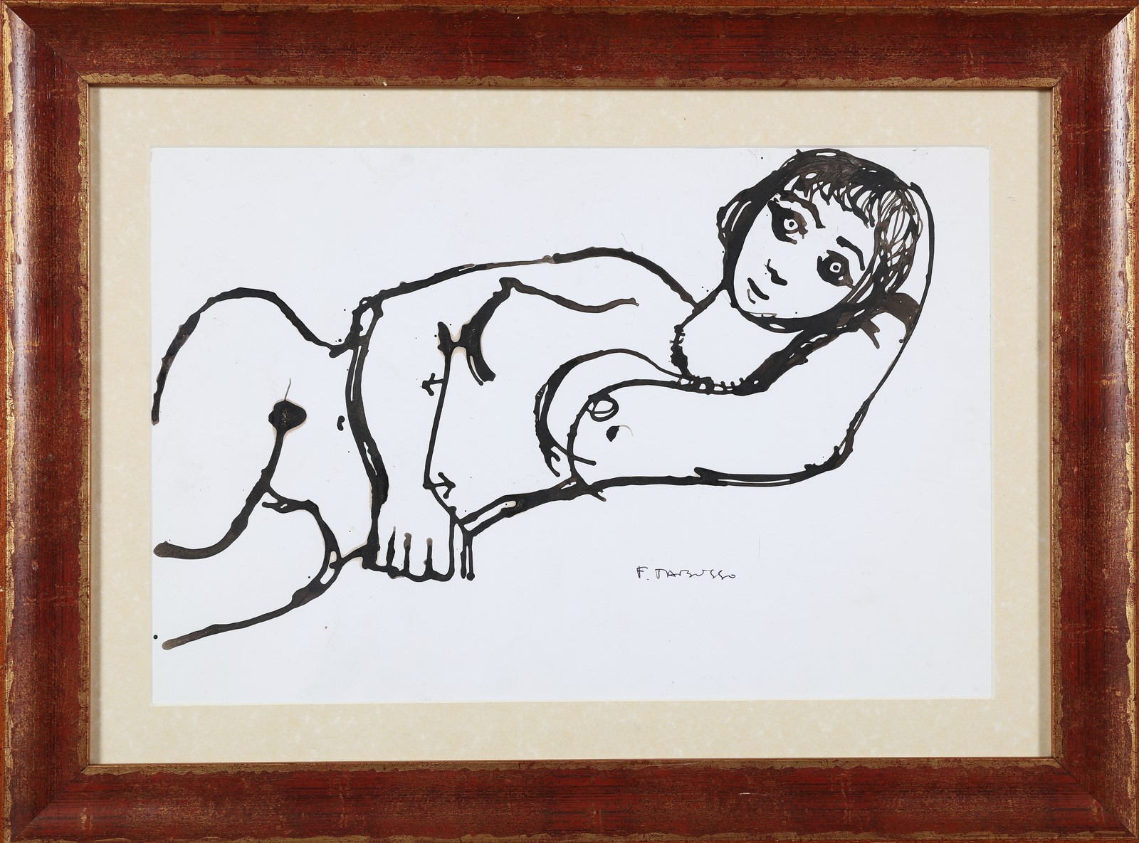 TABUSSO FRANCESCO (1930 - 2012) Figura. China su carta. Cm 45,00 x 30,00. Firma in basso al centro. Cornice presente