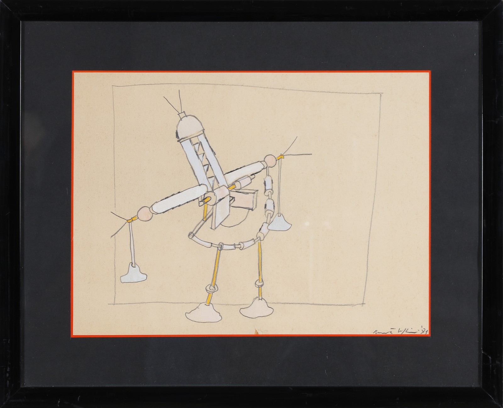 VOLPINI RENATO (n. 1934) Senza titolo. 1979. Tecnica mista su carta. Cm 38,00 x 28,00. Firma e anno a matita in basso a destra. L'opera presenta un piccolo strappo in basso al centro. Cornice presente