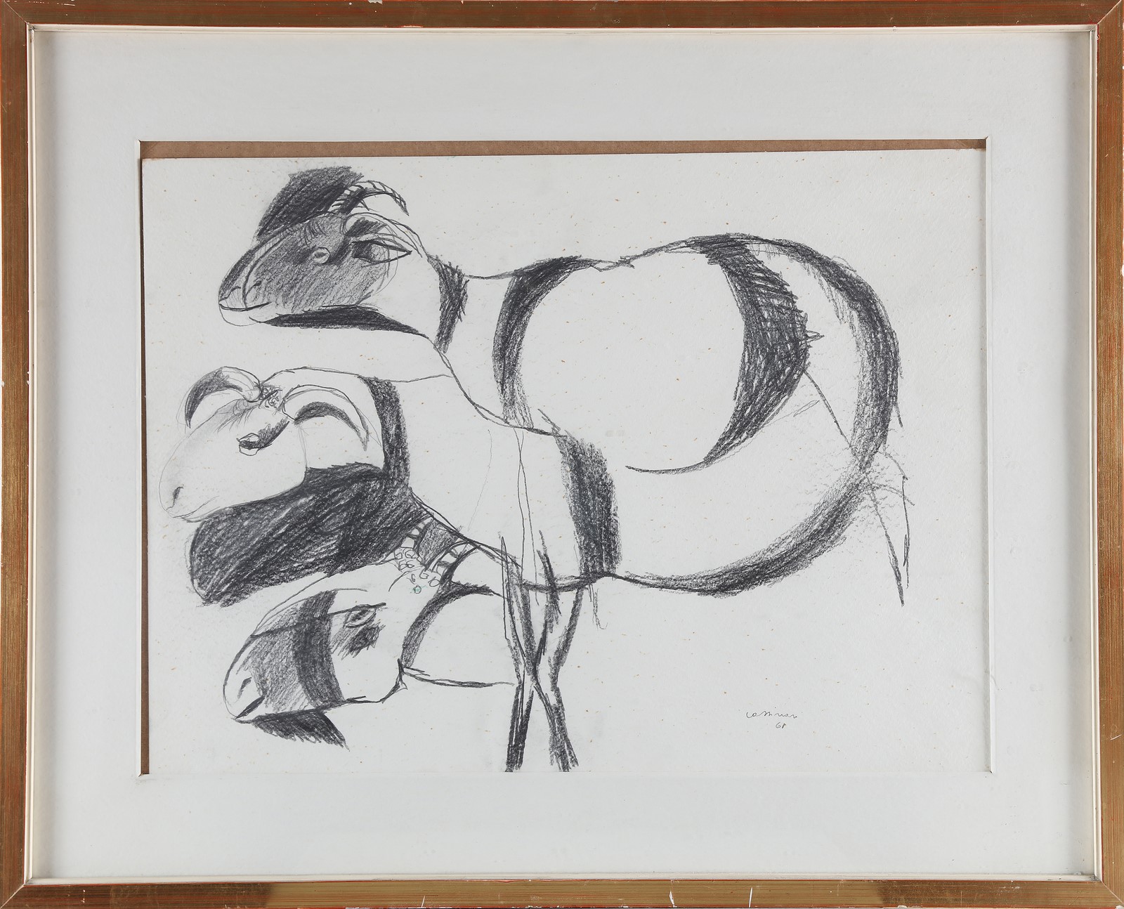CASSINARI BRUNO (1912 - 1992) Capre. 1961. Matita su carta. Cm 54,50 x 40,00. Firma e anno in basso a destra. Cornice presente