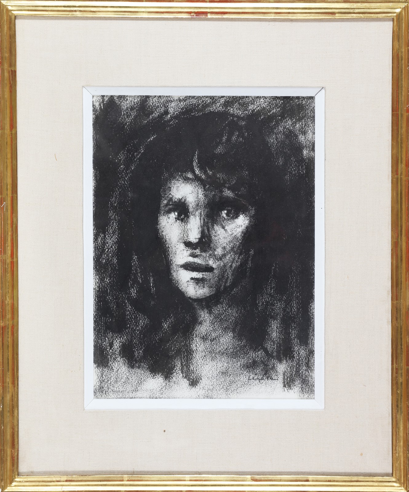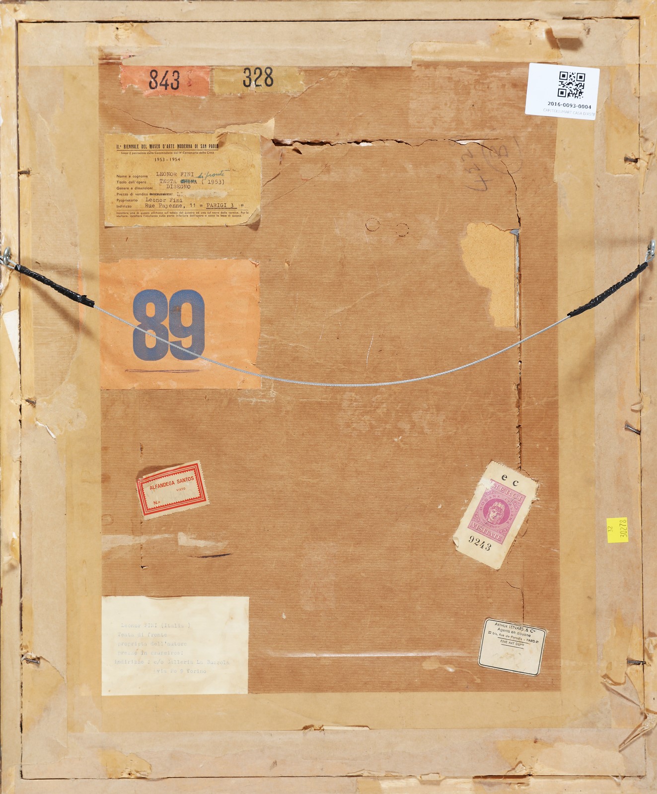 FINI LEONOR (1908 - 1996) Testa di fronte. . 1953. Tecnica mista su cartoncino. Cm 29,00 x 39,00. Firma in basso a destra. Al retro cartiglio espositivo della seconda Biennale del Museo d'Arte Moderna di San Paolo. . Cornice presente