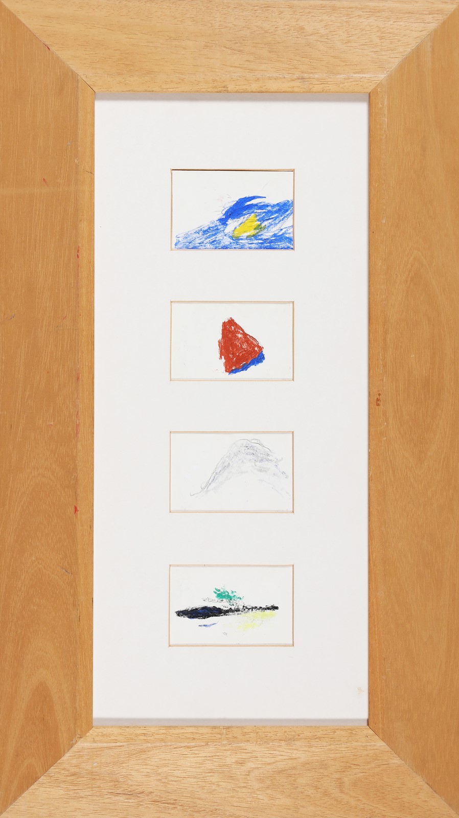 DE MARIA NICOLA (n. 1954) Senza titolo. 1977. Tecnica mista su carta. Cm 21,00 x 50,00. Dimensione singolo foglio: cm 6.5x9. Al retro firma, anno e scritta: Uno X Due X tre X Quattro. Autentica dell'artista su fotografia. Cornice presente