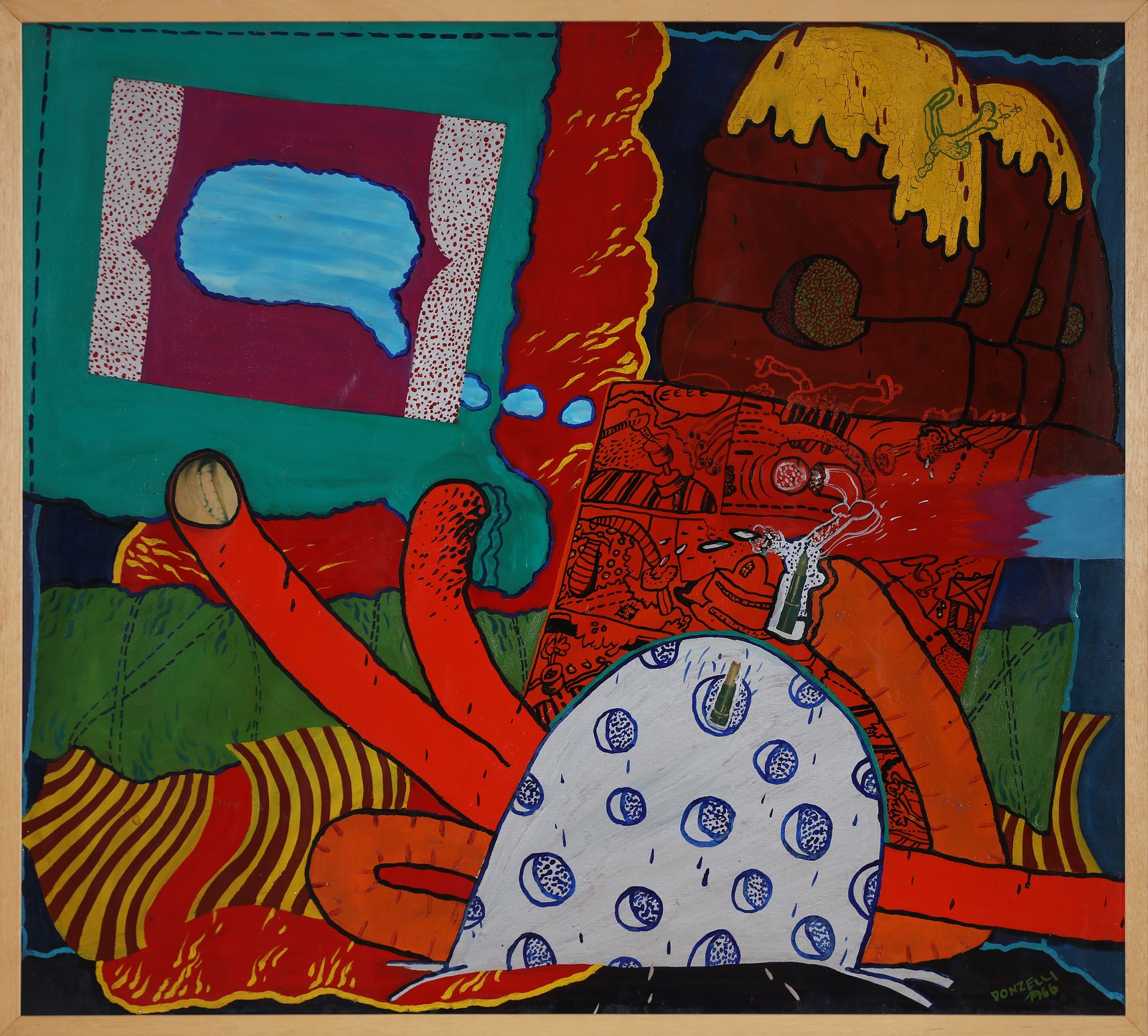 DONZELLI BRUNO (n. 1941) Dalla società del benessere. 1966. Tecnica mista su...