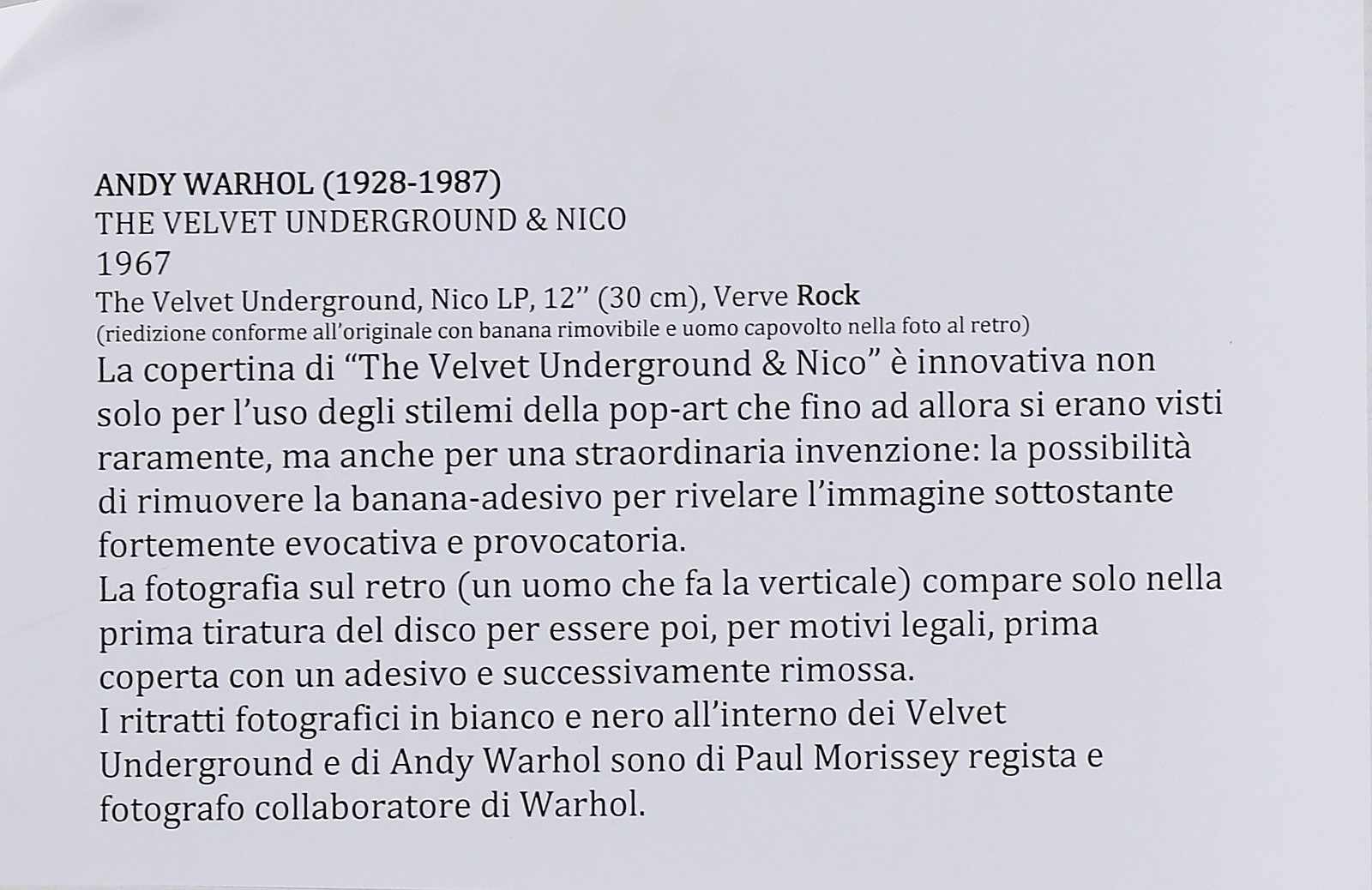 WARHOL ANDY (1928 - 1987) The velvet underground & nico. 1967. Vinile. Cm 32,00 x 32,00. All'interno presente foto in bianco e nero di Andy Warhol. Sulla copertina è possibile rimuovere la banana adesiva per rilevare l'immagine sottostante.
