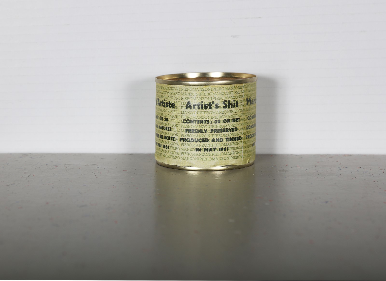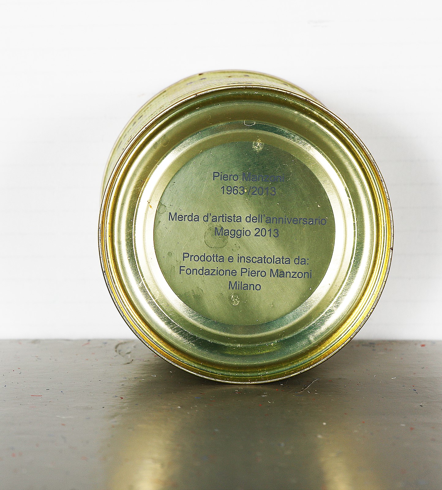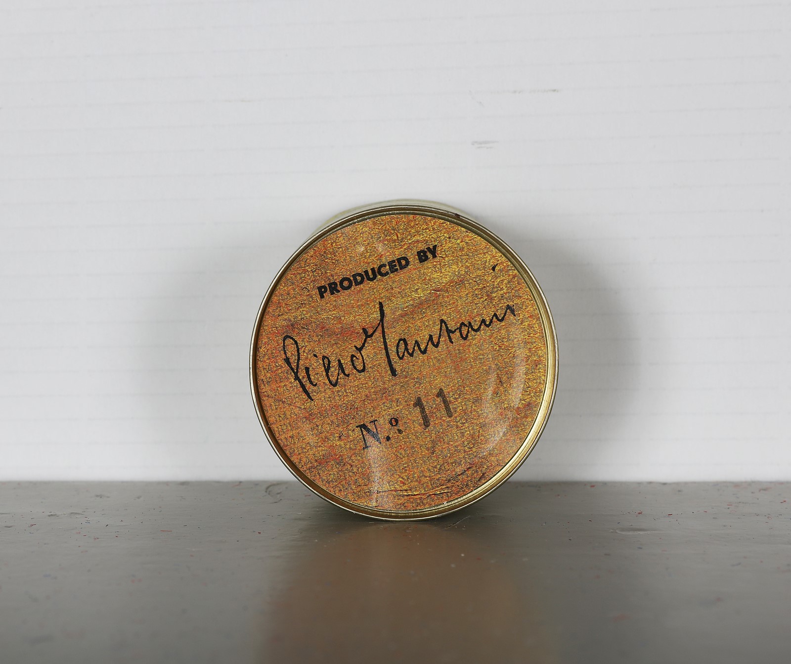 MANZONI PIERO (1963 - 2013) Merda d'Artista. Latta. Cm 7,00 x 11,00. Ed.90. Merda d'Artista dell'anniversario, Maggio 2013. Prodotta ed inscatolata dalla Fondazione Piero Manzoni, Milano. Presente impronta a rilievo sulla chiusura.