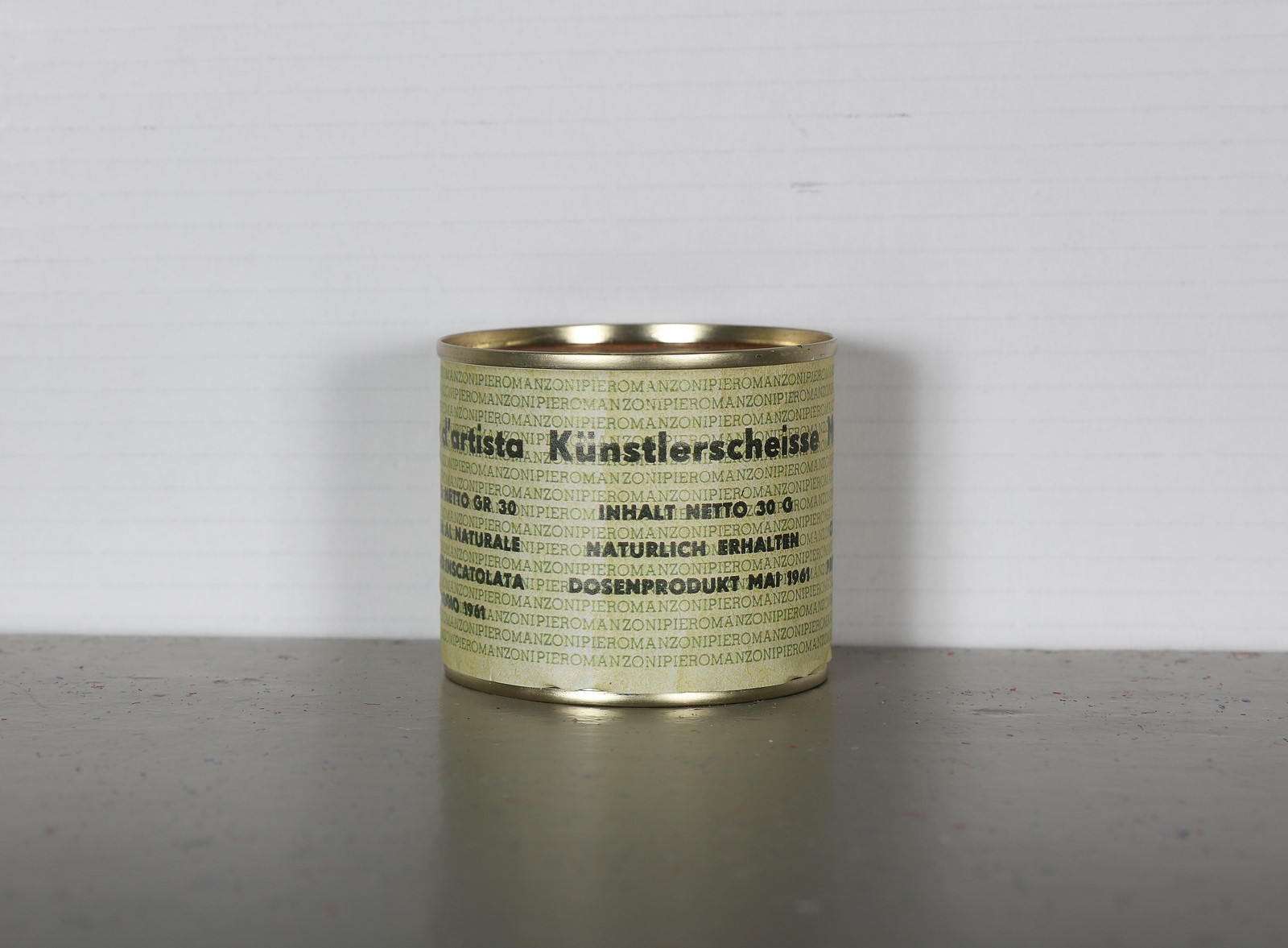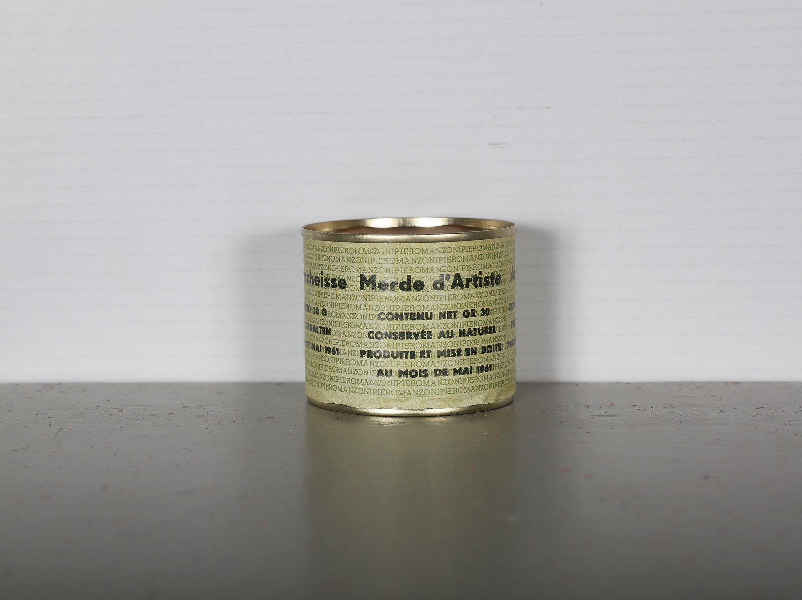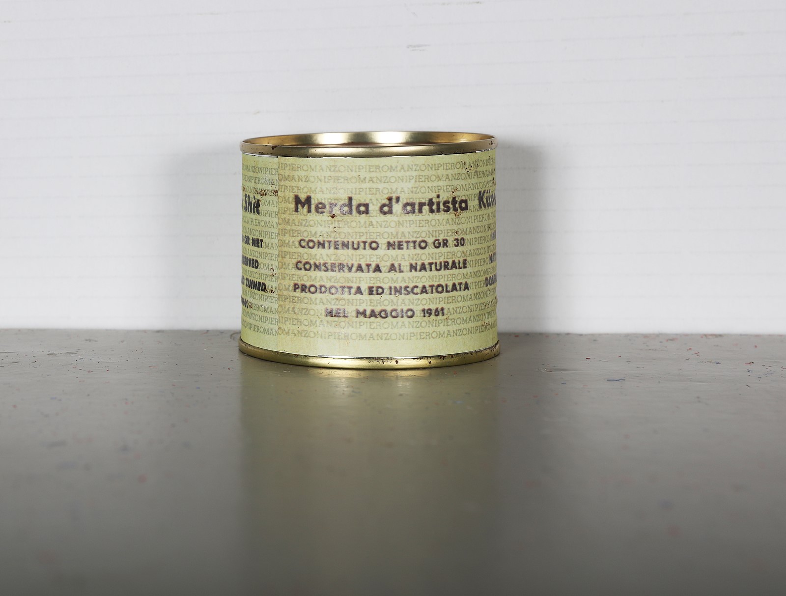 MANZONI PIERO (1963 - 2013) Merda d'Artista. Latta. Cm 7,00 x 11,00. Ed.90. Merda d'Artista dell'anniversario, Maggio 2013. Prodotta ed inscatolata dalla Fondazione Piero Manzoni, Milano. Presente impronta a rilievo sulla chiusura.