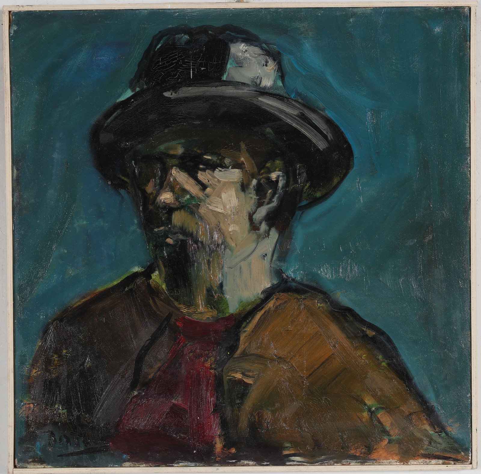 PATELLI PAOLO (n. 1934) Mandriano. 1964. Olio su tela. Cm 50,00 x 50,00. Firma in basso a sinistra. Al retro firma, titolo e anno.