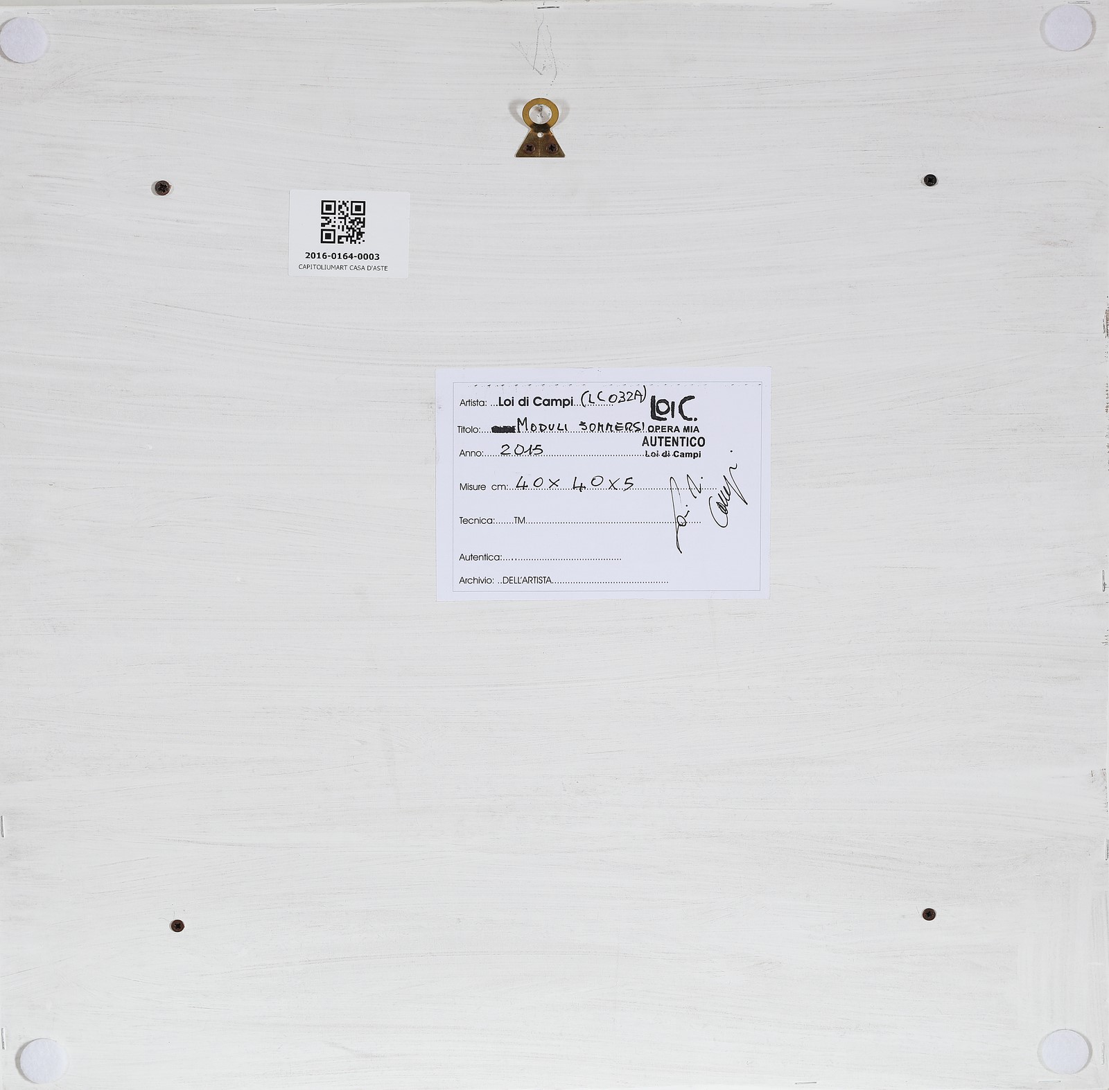 DI CAMPI LOI (n. 1948) Moduli sommersi. 2015. Acrilico su tela estroflessa. Cm 40,00 x 40,00. Al retro cartiglio descrittivo a cura dell'artista con firma per autentica. Cornice presente