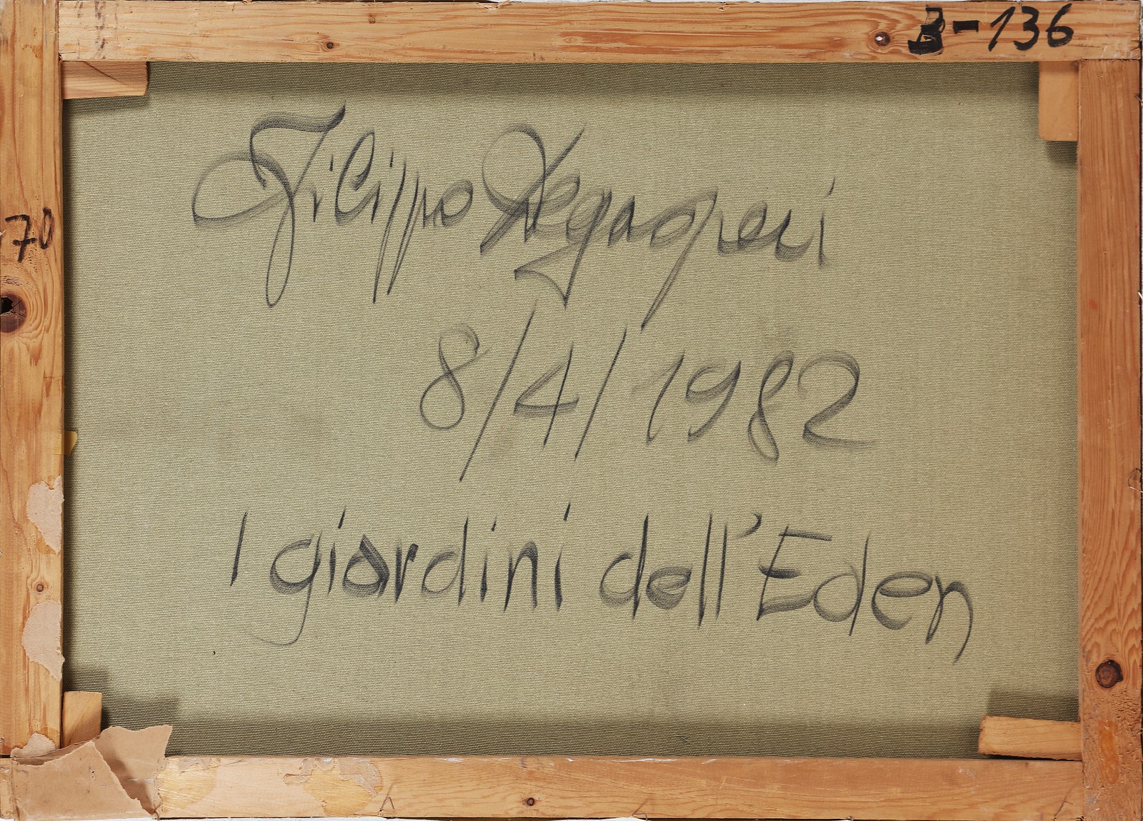 DE GASPERI FILIPPO (n. 1928) I giardini dell'Eden. . 1982. Acrilico su tela. Cm 70,00 x 50,00. Al retro titolo, firma e anno.