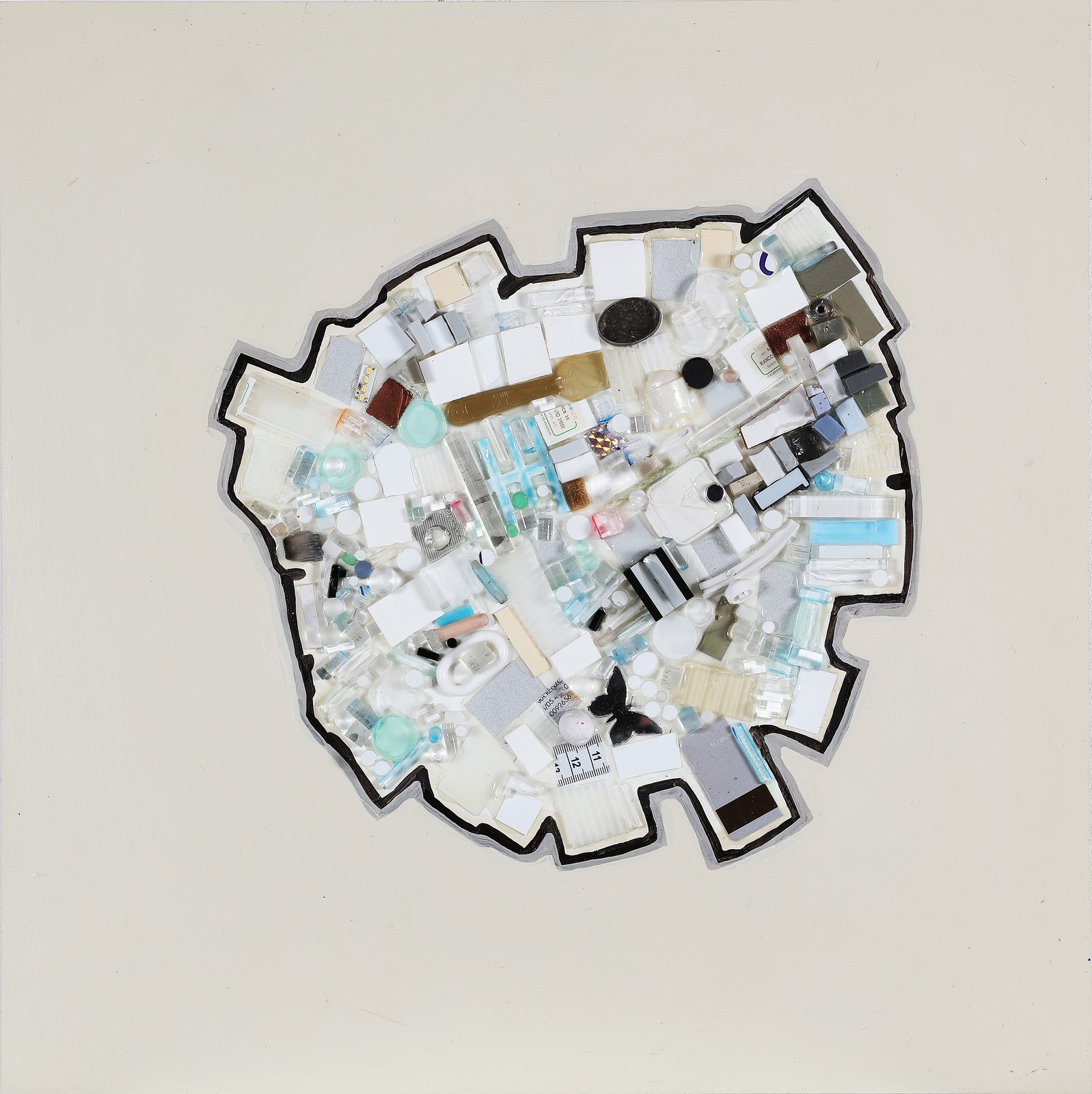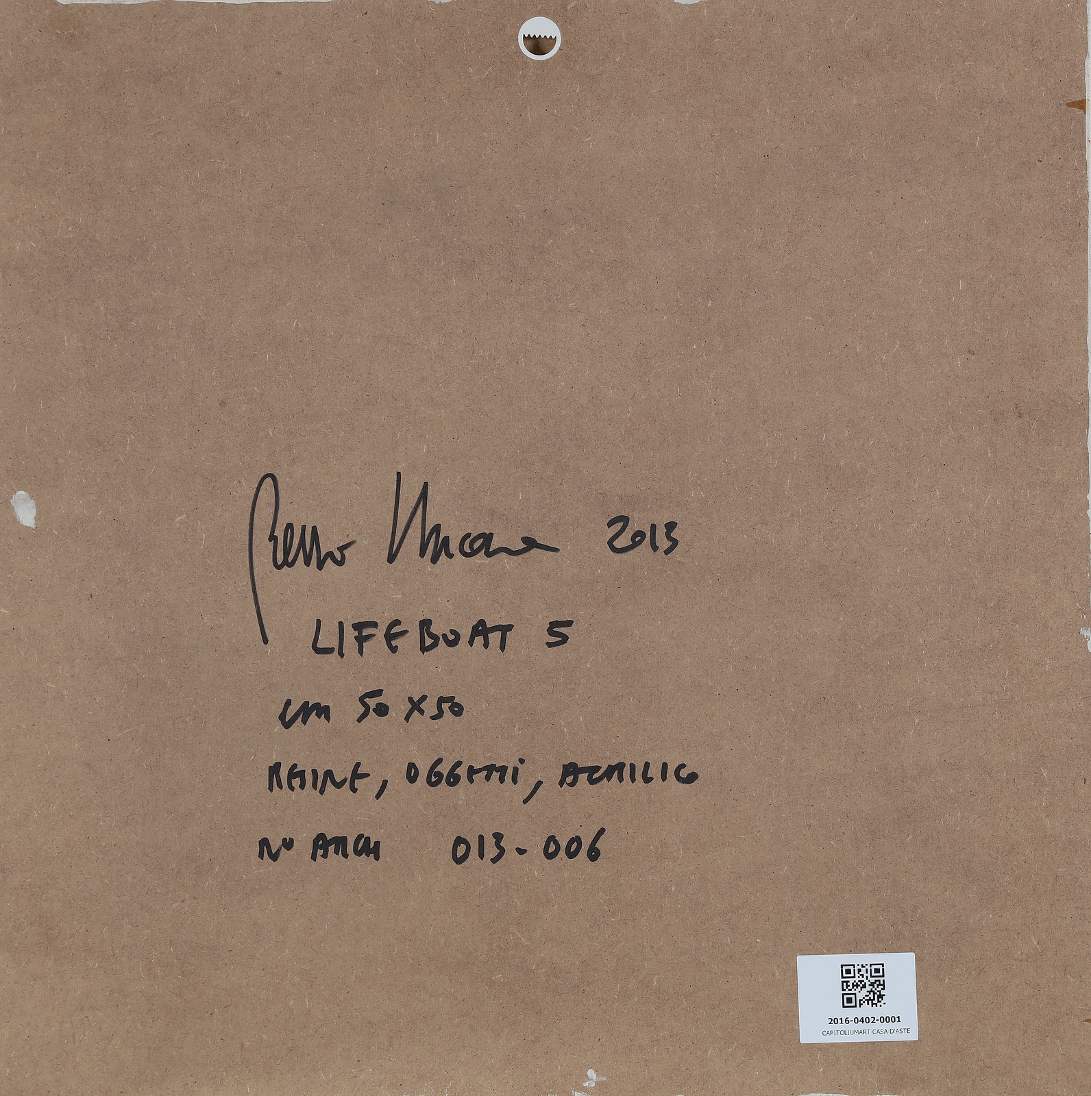 NUCARA RENZO (n. 1955) Lifeboat 5. 2013. Acrilico su tavola e collage. Cm 50,00 x 50,00. Al retro titolo, firma e anno. Autentica dell'artista su fotografia riportante il relativo numero d'inventario.