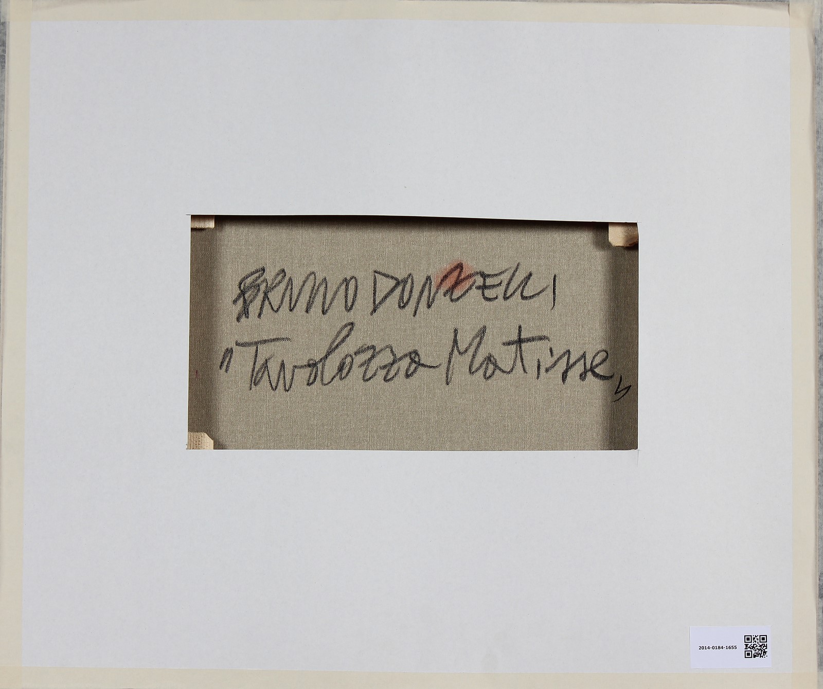 DONZELLI BRUNO (n. 1941) Tavolozza Matisse. Tecnica mista su tela. Cm 50,00 x 40,00. Firma in basso a destra. Al retro titolo e firma. Autentica dell'artista su fotografia come da documentazione allegata all'opera. Cornice presente