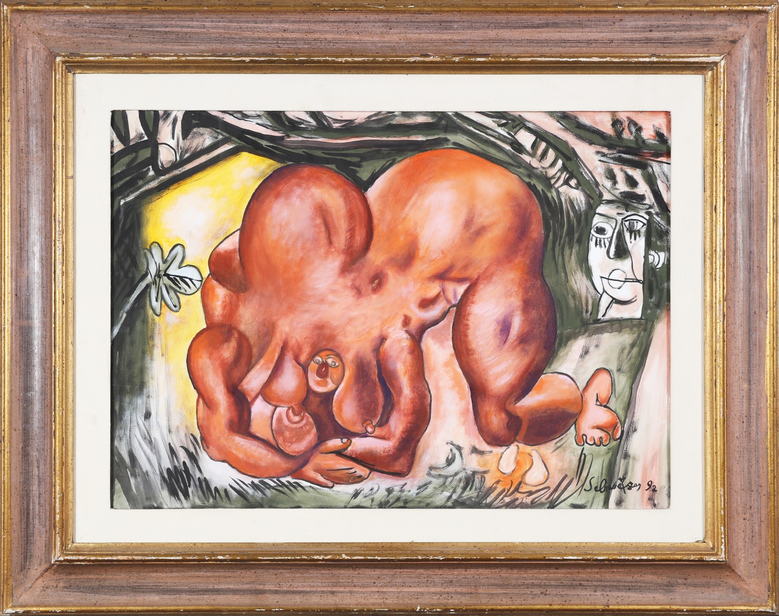 SCHWEIZER RICCARDO (1925 - 2004) Senza titolo. 1992. . Cm 70,00 x 50,00. Firma e anno in basso a destra.