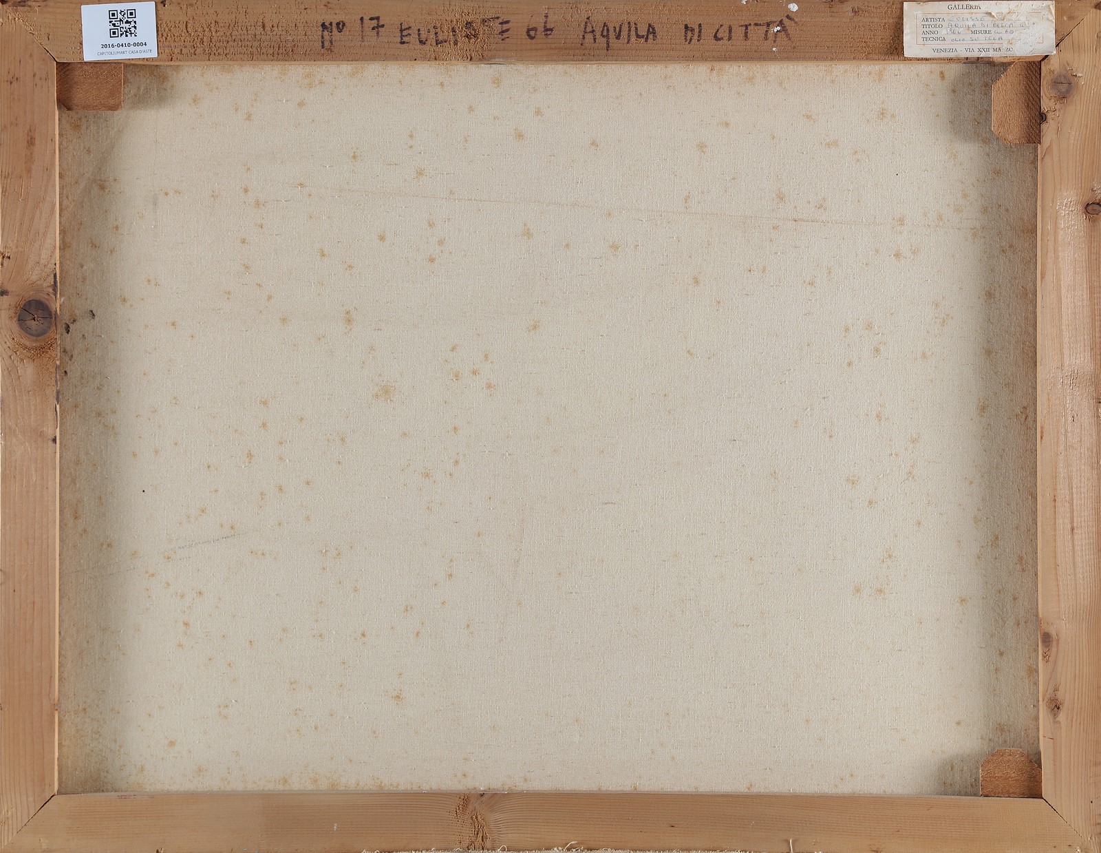 EULISSE VINCENZO (n. 1936) Aquila di città. 1967. Olio su tela. Cm 80,00 x 60,00. Firma e anno in basso a sinistra. Cornice presente