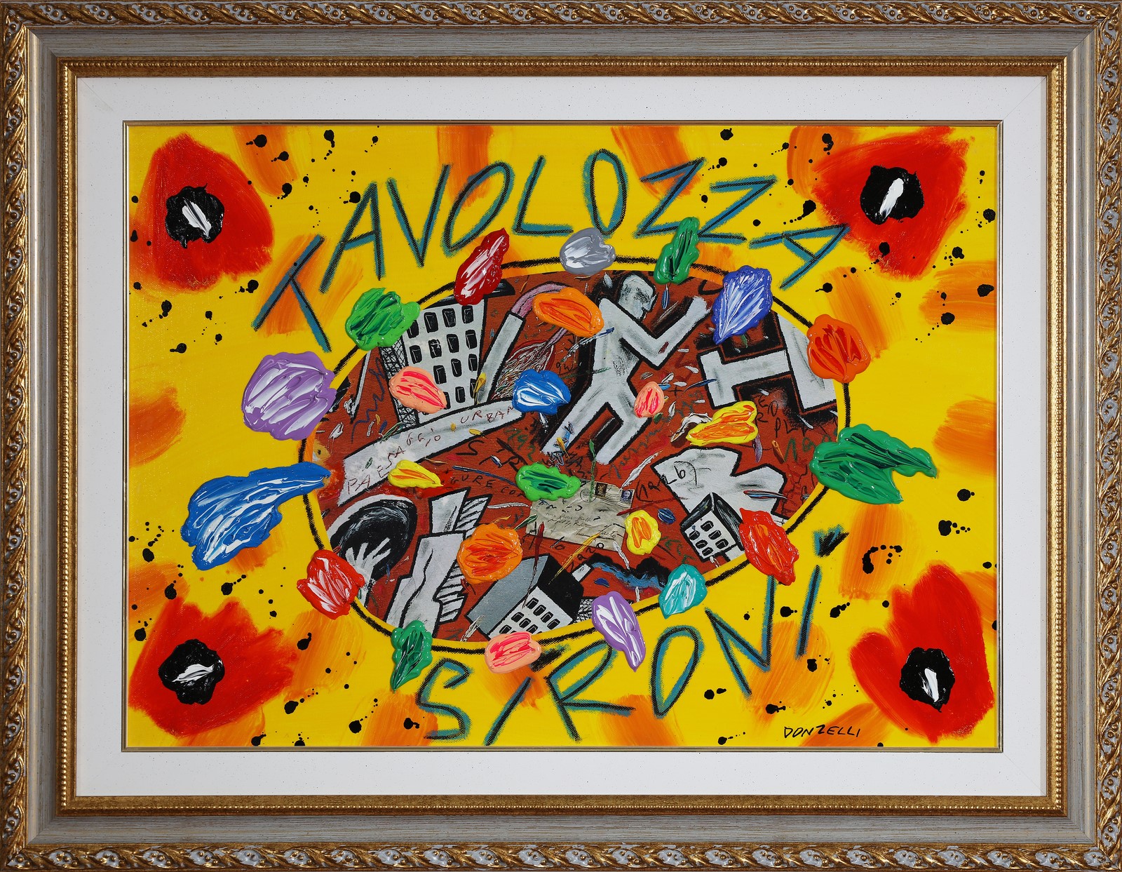 DONZELLI BRUNO (n. 1941) Tavolozza Sironi. Tecnica mista su tela. Cm 70,00 x...