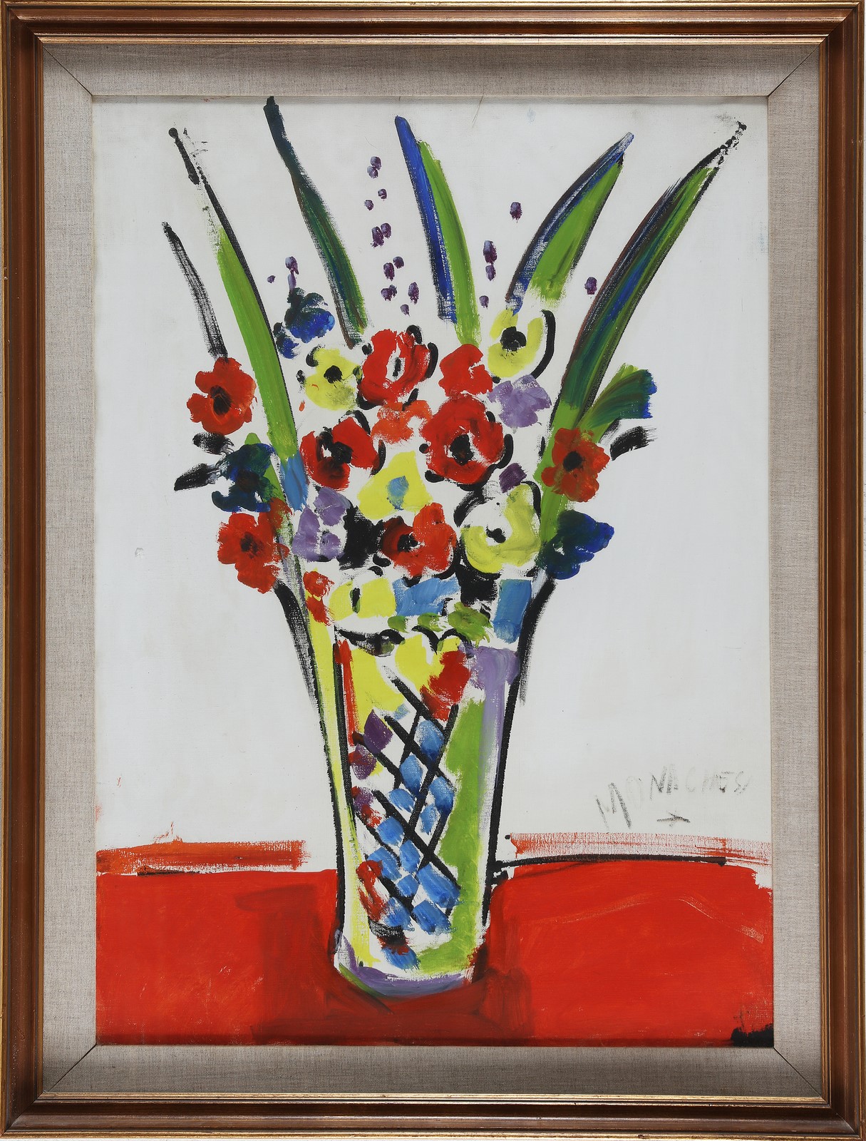 MONACHESI SANTE (1910 - 1991) Fiori. Olio su tela. Cm 50,00 x 70,00. Firma in basso a destra. Esposizioni: Istituto Europeo di Storia dell'Arte, Milano, Mostra personale dell'artista, 9 - 30 Maggio 1969 (Timbro al retro). Cornice presente