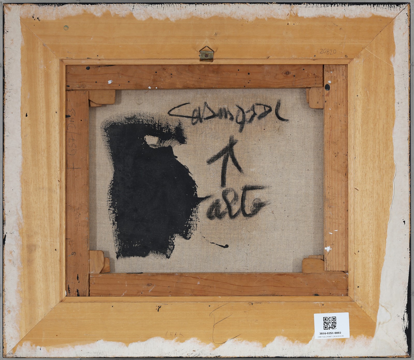 CARMASSI ARTURO (n. 1925) Senza titolo. Tecnica mista e collage su tela. Cm 46,00 x 38,00. Firma al retro. Autentica dell'artista su fotografia. Opera contenuta in un teca di plexiglas. Cornice presente