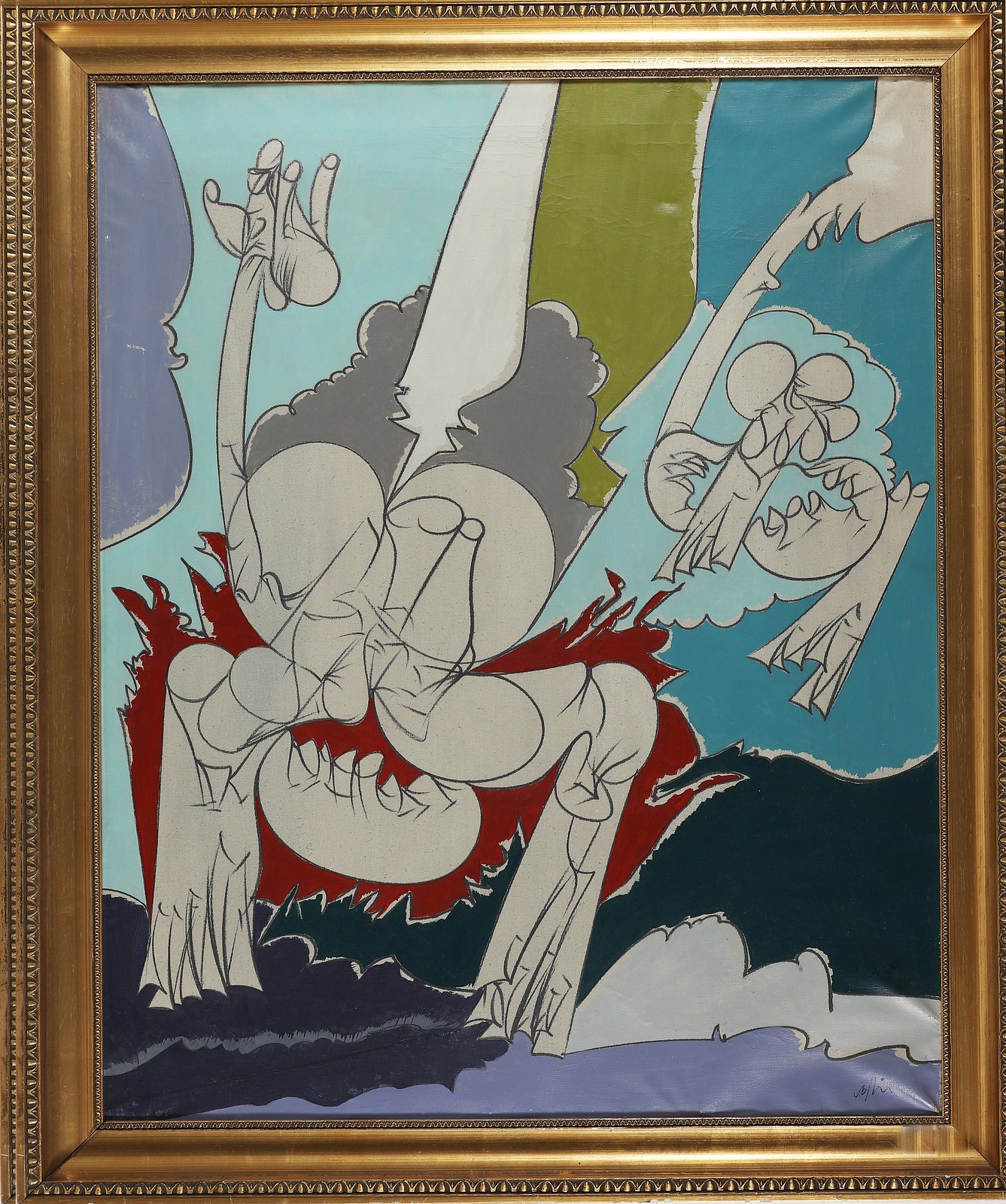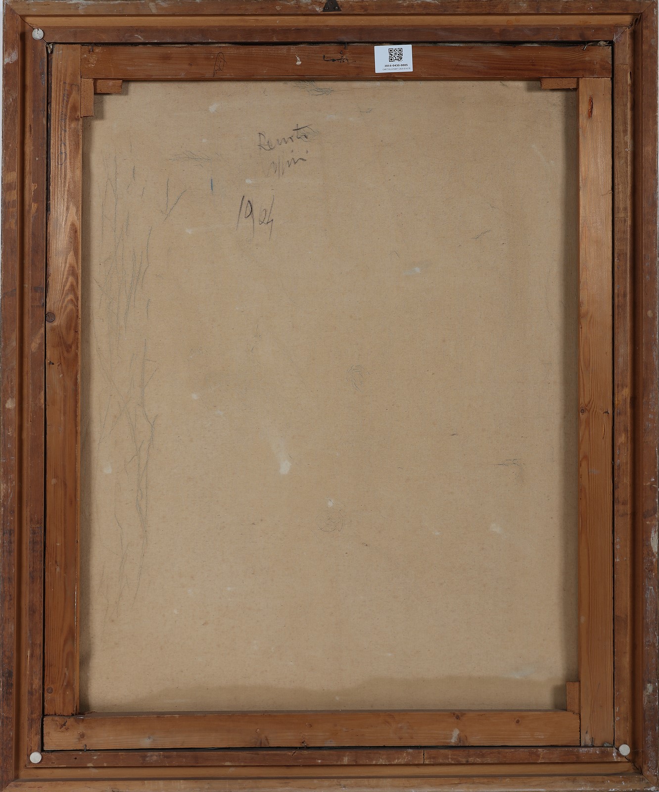 VOLPINI RENATO (n. 1934) Senza titolo. 1964. Olio su tela. Cm 80,00 x 100,00. Firma in basso a destra. Al retro firma e anno. Cornice presente