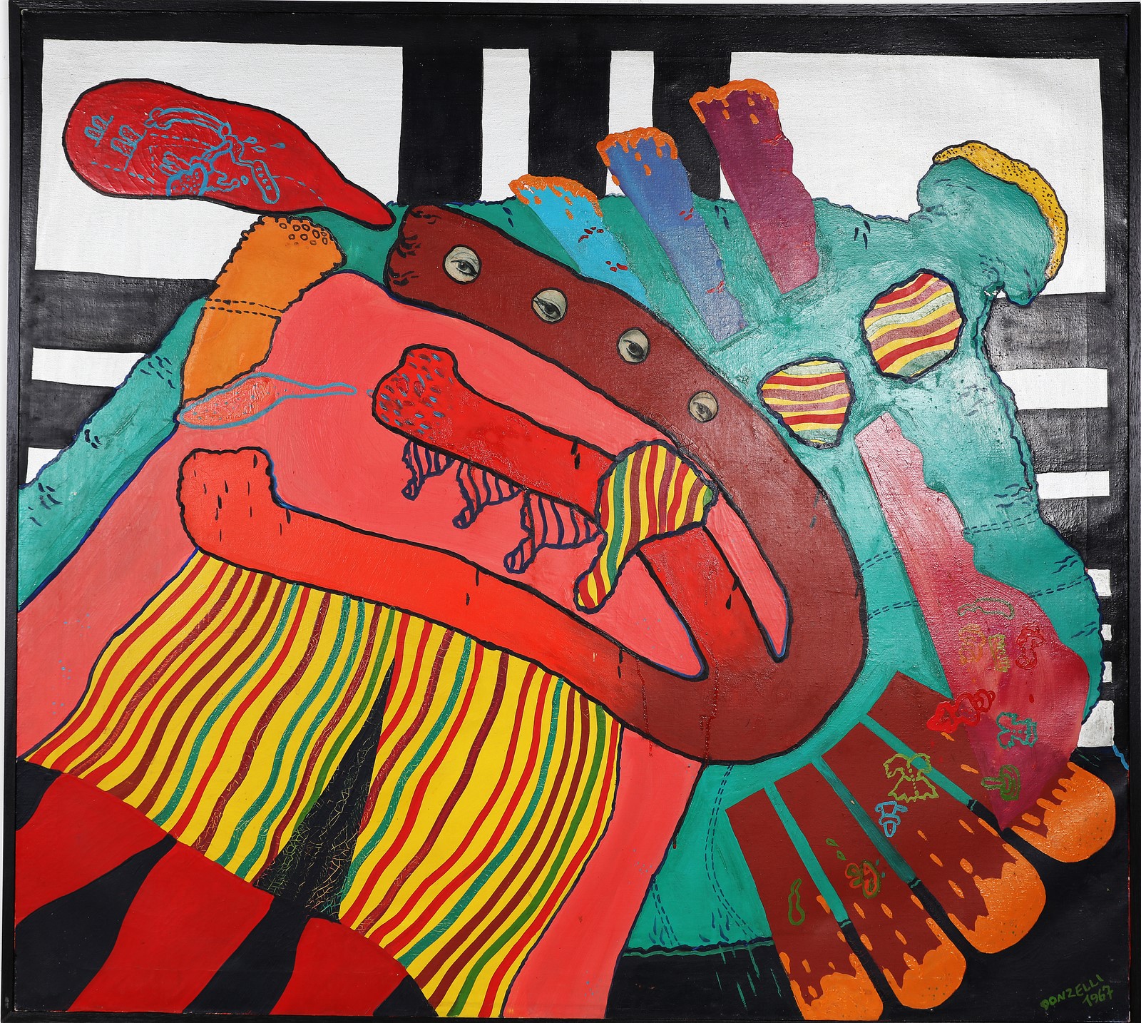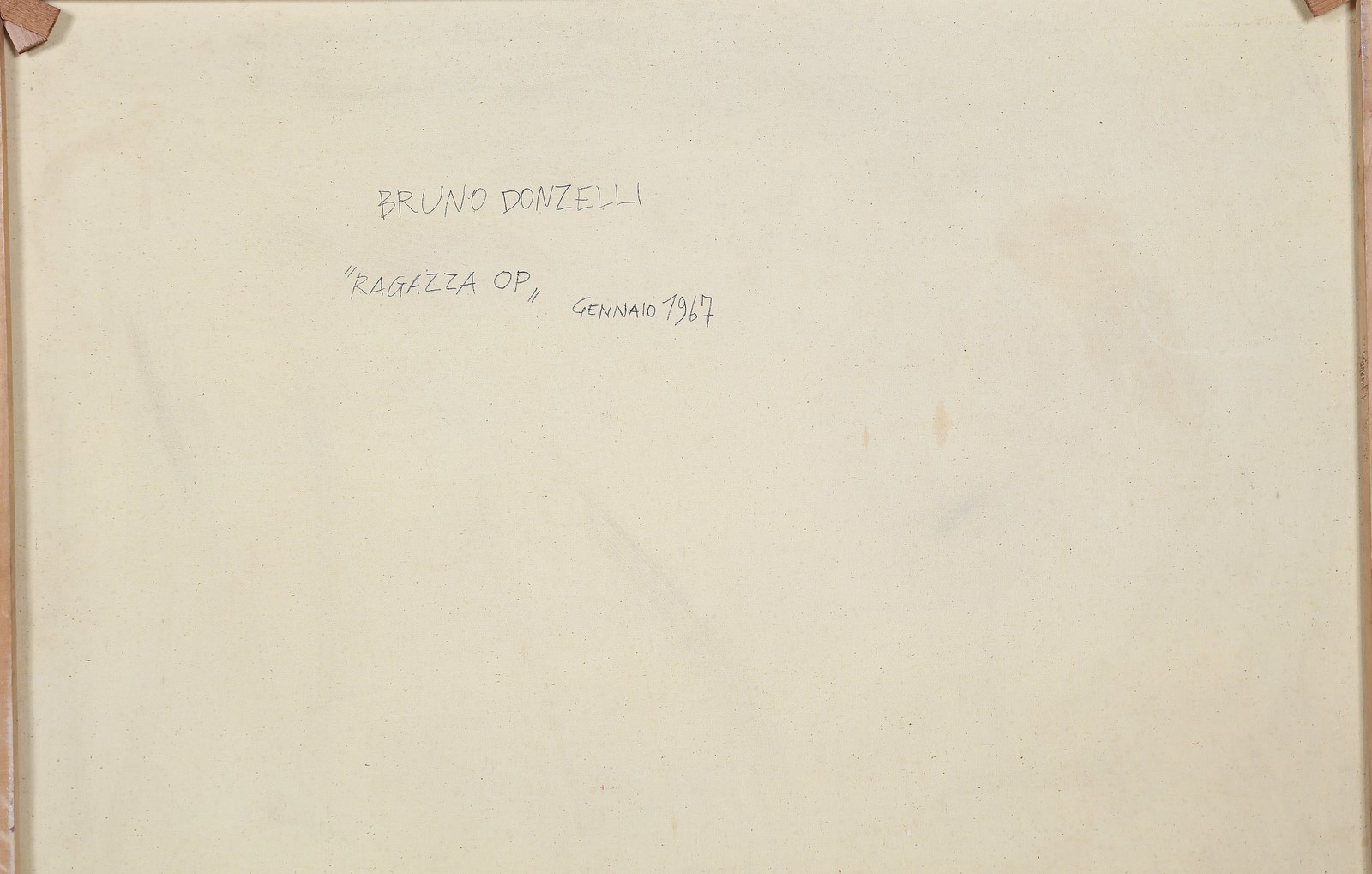 DONZELLI BRUNO (n. 1941) Ragazza op. 1967. Tecnica mista su tela. Cm 100,00 x 89,00. Firma e anno in basso a destra. Al retro firma, titolo e anno. La tela presenta piccoli difetti. Autentica dell'artista su fotografia.